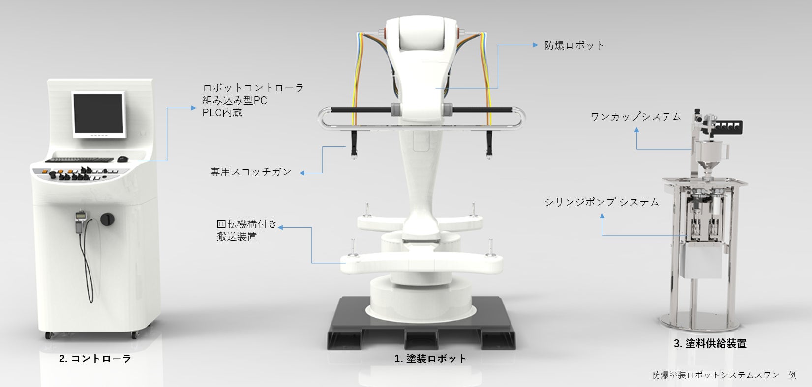 SWANは塗装に必要な機能をオールインワンのセットにした塗装システムです。塗装ブースに設置後、直ぐに塗装ができるシステムとなっています。