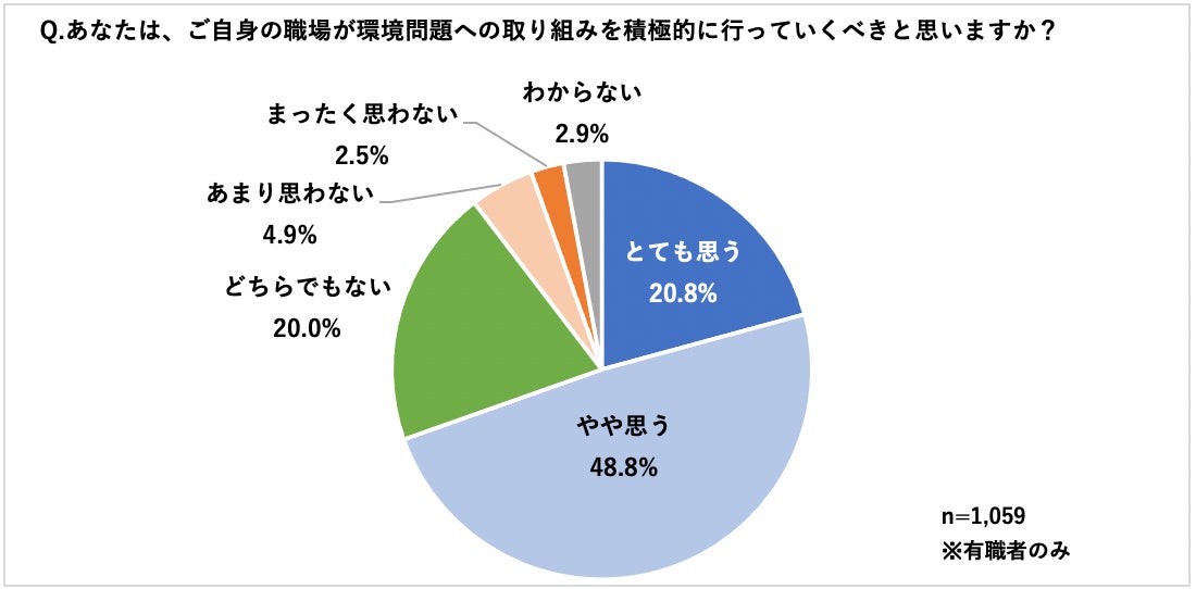 ・職場は環境問題への取り組みを積極的に行っていくべきと回答した人は約7割。