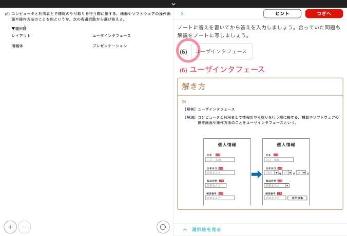 実際の設問と解答画面