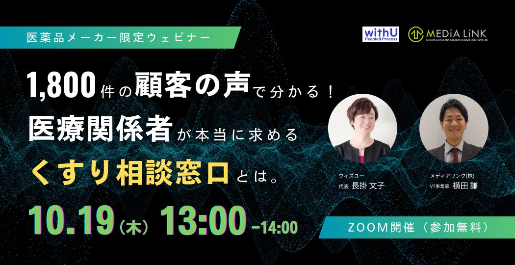 【10月19日(木)13時00分~】「1,800件の顧客の声で分かる!医療関係者が本当に求めるくすり相談窓口とは」ウェビナー開催のお知らせ