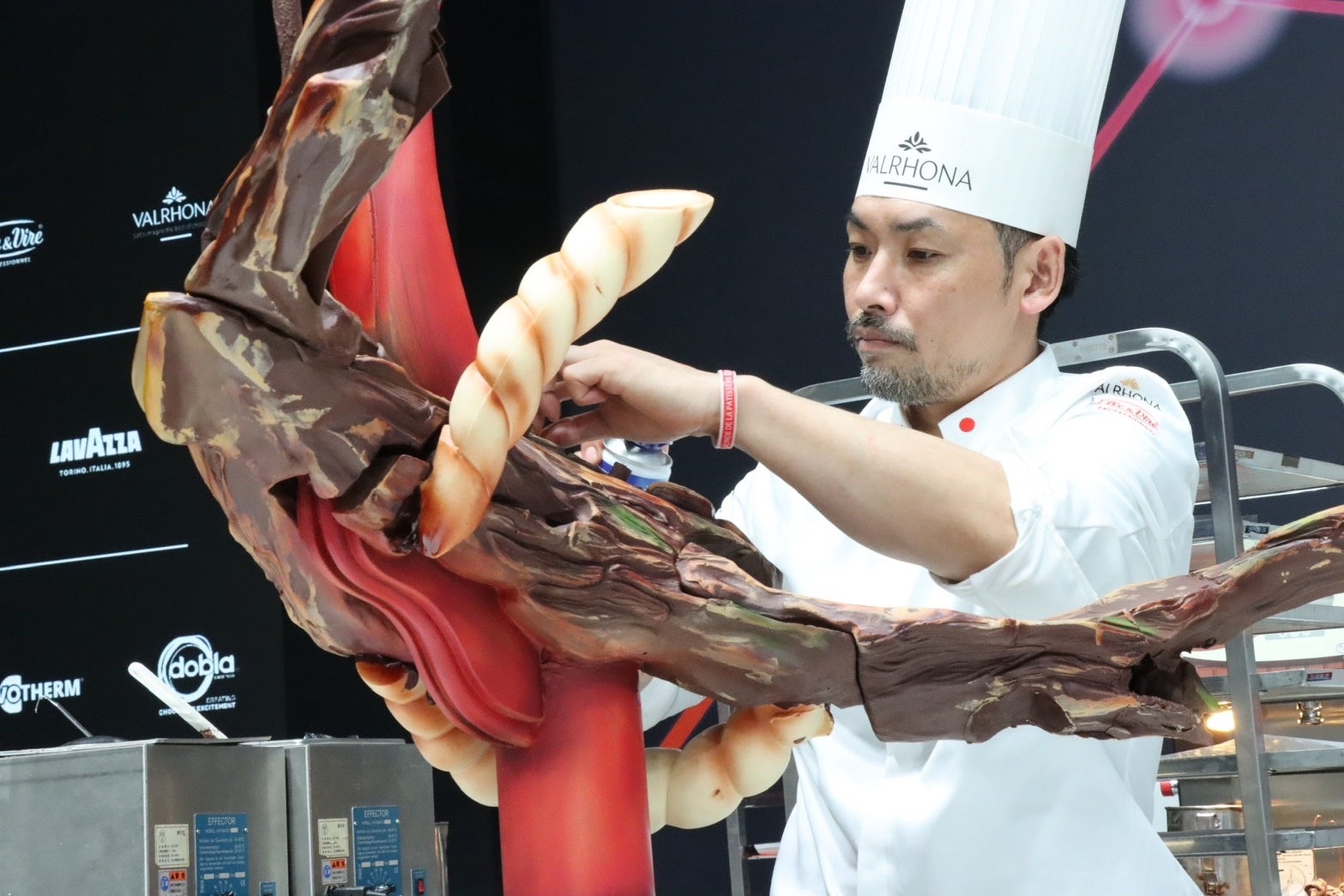 籏は、日本代表のチームリーダーとして、チョコレート細工とレストランデザートを担当。