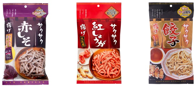 当社の「サクサク揚げ」シリーズは、サクサク食感のほまれにピッタリ合う味つけを施した「ほまれスナック」です。既存商品として発売中の、紅しょうがの味がクセになる「サクサク紅しょうが揚げ」や、餃子を食べるときにつけるタレやラー油も感じさせる「サクサク餃子揚げ」に続く「サクサク赤しそ揚げ」を加えた3品のラインアップで、味わいのバリエーションを拡充し、お客様に多様な楽しみを提供できるよう提案してまいります。
