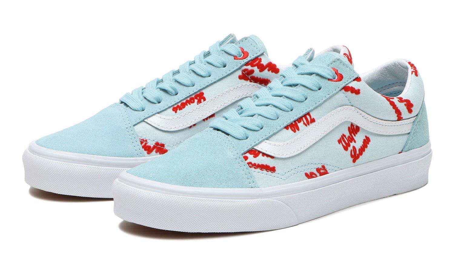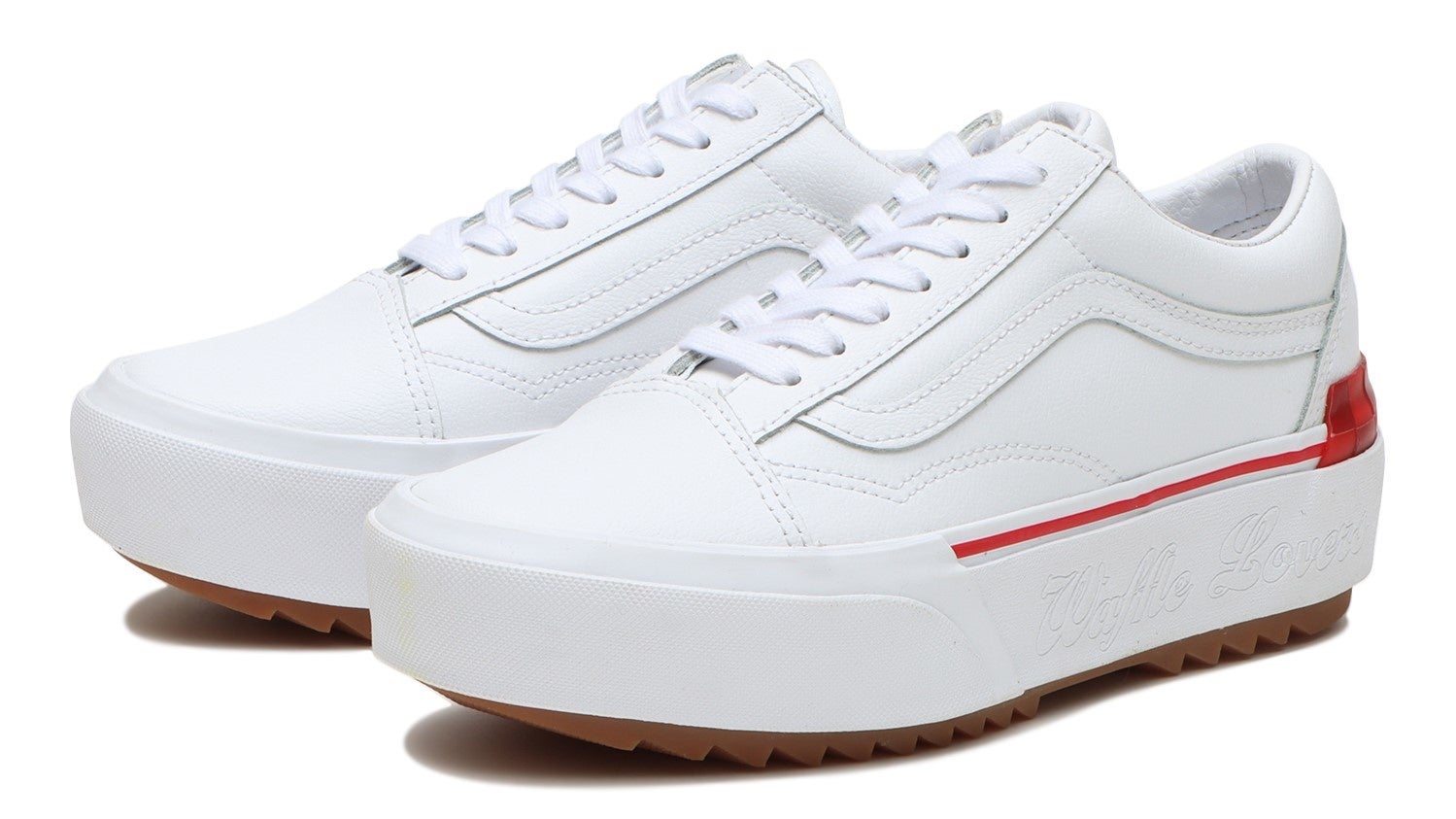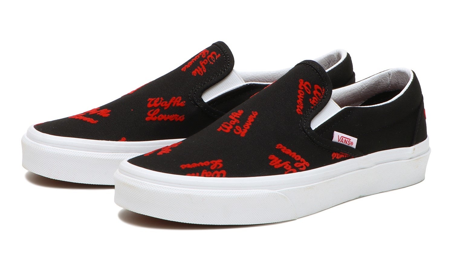 また、アウトソールに“Waffle Lovers”のエンボス加工を施しスタックソールを使用した厚底のSk8-HiとOld Skool、ヒールに“Waffle Lovers”のプリントと半分になったハートの上部が除くOld SkoolとSlip-Onの4足をオールレザーで展開。