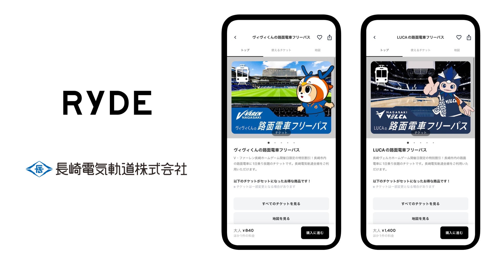 二次交通のDXを推進するRYDE株式会社(本社:東京都渋谷区、代表取締役 杉﨑正哉、以下「RYDE」という。)が提供するモビリティプラットフォーム「RYDE PASS」にて、長崎スタジアムシティで実施するV・ファーレン長崎と長崎ヴェルカのホームゲーム開催日に、長崎の路面電車が全線乗り放題になるチケットを販売することが決定いたしました。