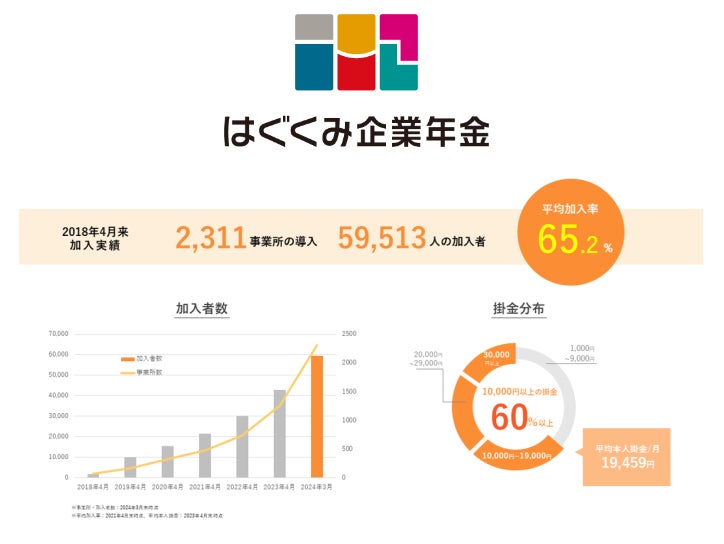 「はぐくみ企業年金」は厚生年金被保険者であれば、従業員(非正規雇用含む)でも役員でも加入可能な企業年金基金で、事業主側はコストを抑えながら企業年金・退職金制度を構築することができます。企業年金・退職金制度充実が従業員満足度向上・離職率低下につながることから、特に人手不足が深刻化している福祉業界において、人材定着をはかるための福利厚生のひとつとしてご好評いただいています。