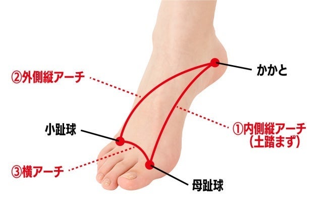 「足裏アーチ」はバネやクッションにもなる重要な部位で、身体のバランスを保つ上でも重要な役割を果たしています。