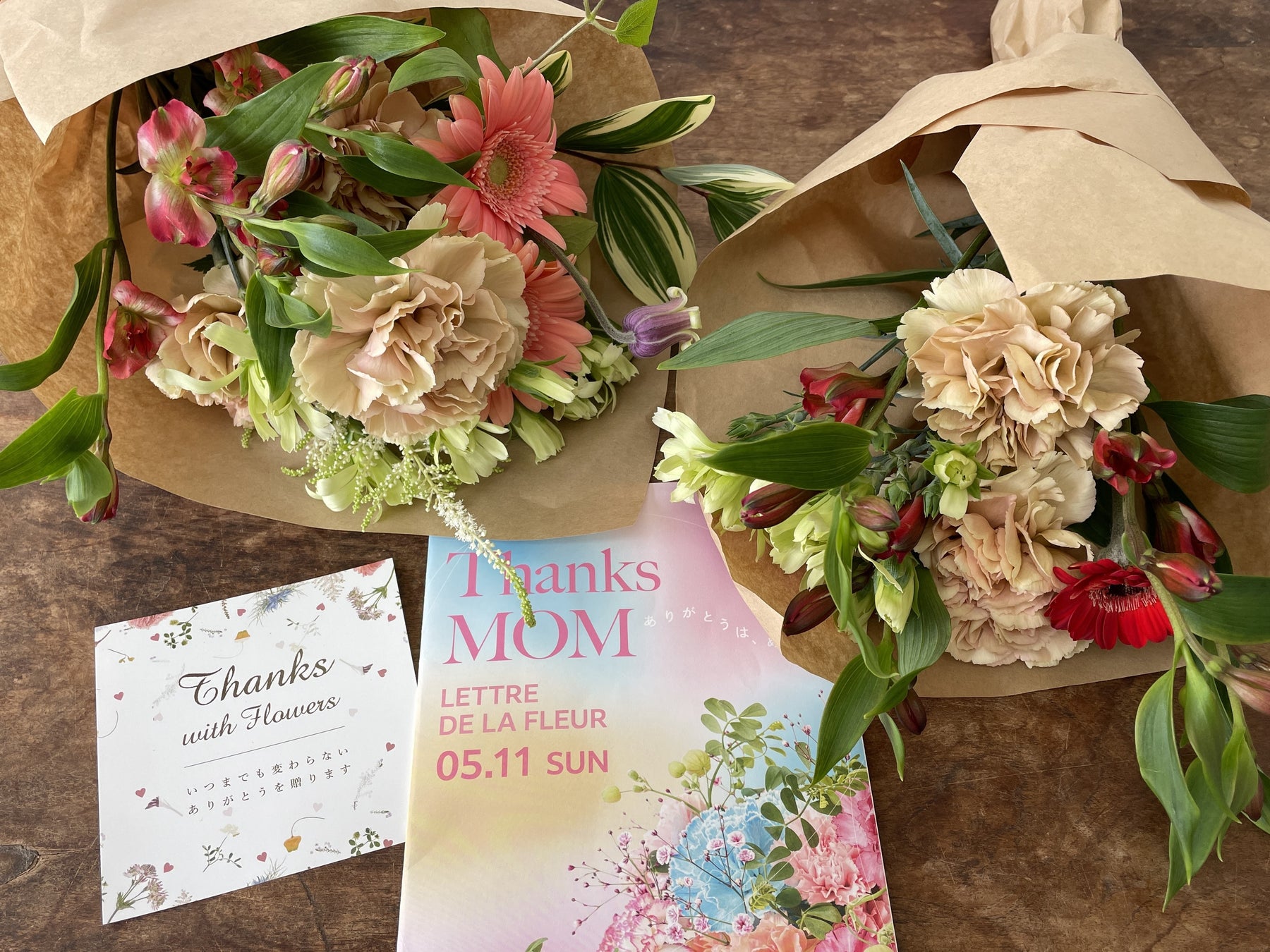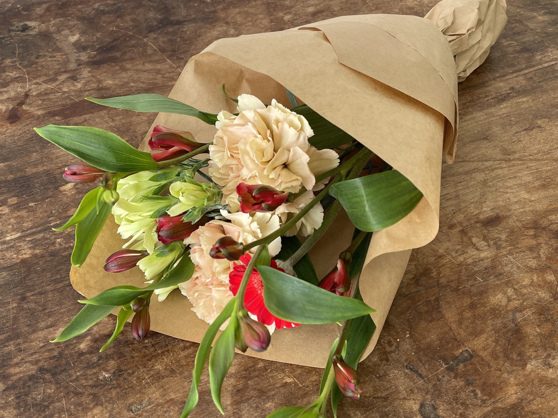 取り扱い花材は、母の日に向けて生産されたカーネーションをはじめとした旬の花々。母の日のギフトにもおすすめ。