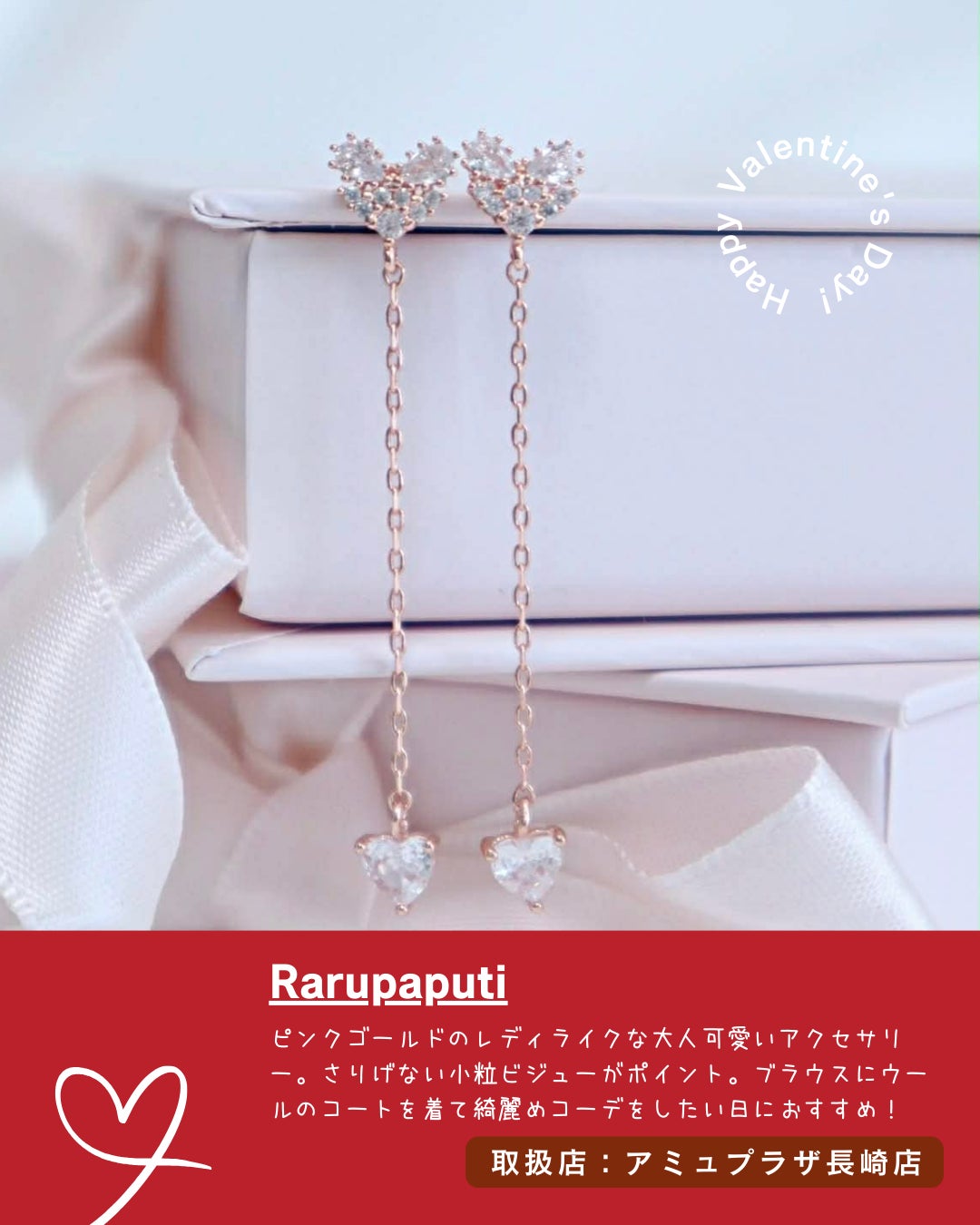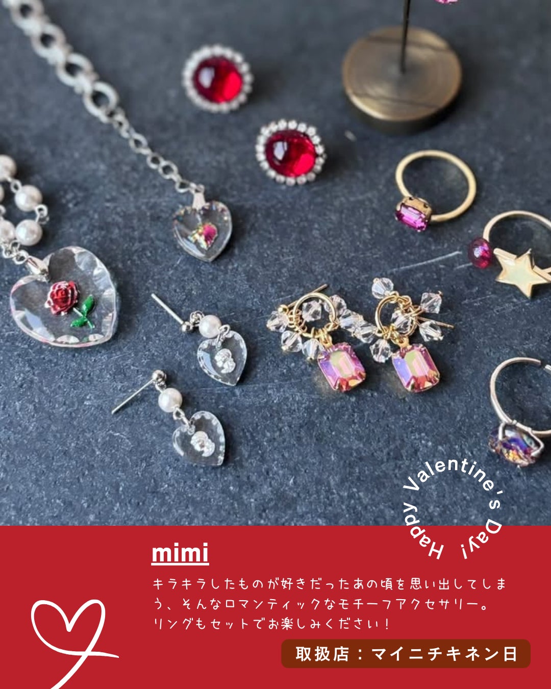 店頭ではチョコレートやハートモチーフのアクセサリーや雑貨をこの時期限定でセレクト。