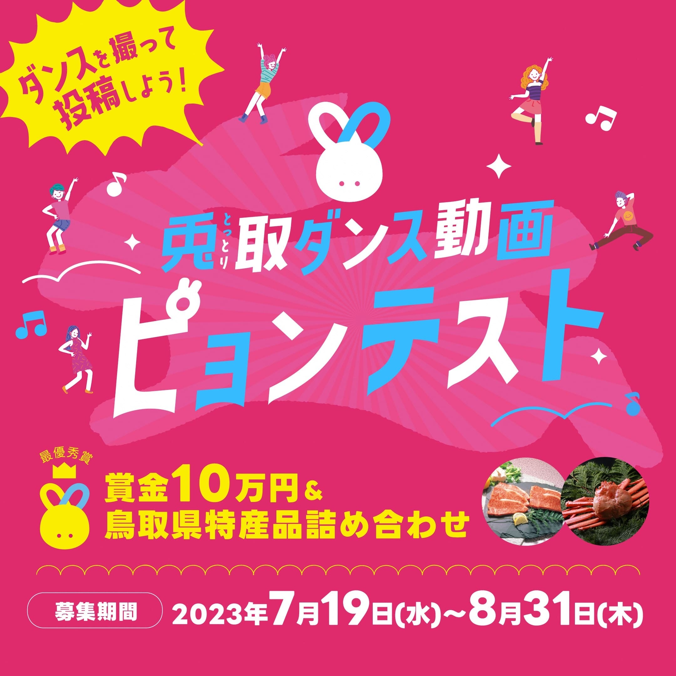 “兎取ダンス動画ピョンテスト”は、童謡「だいこくさま」アレンジ曲と「ピョンテスト・オリジナル」のいずれかの音源を使ったダンス動画を募集し、一次審査では決勝大会へ出場する10組を決定。一次審査で選ばれた10組は、秋に鳥取県で行われる決勝大会で「うさぎダンス」を披露していただきます。