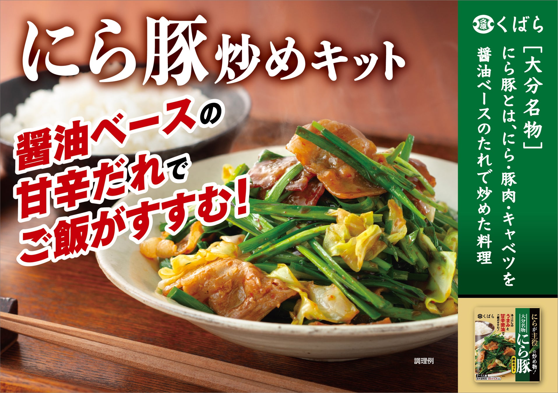 炒め物のマンネリを打破する、にらが主役の炒めキットが新登場くばら「大分名物 にら豚炒めキット」5月1日(月)より全国のスーパーにて発売開始!