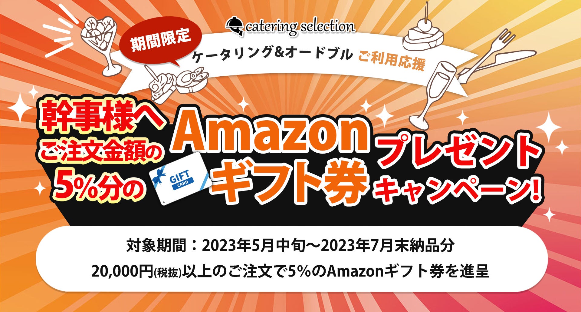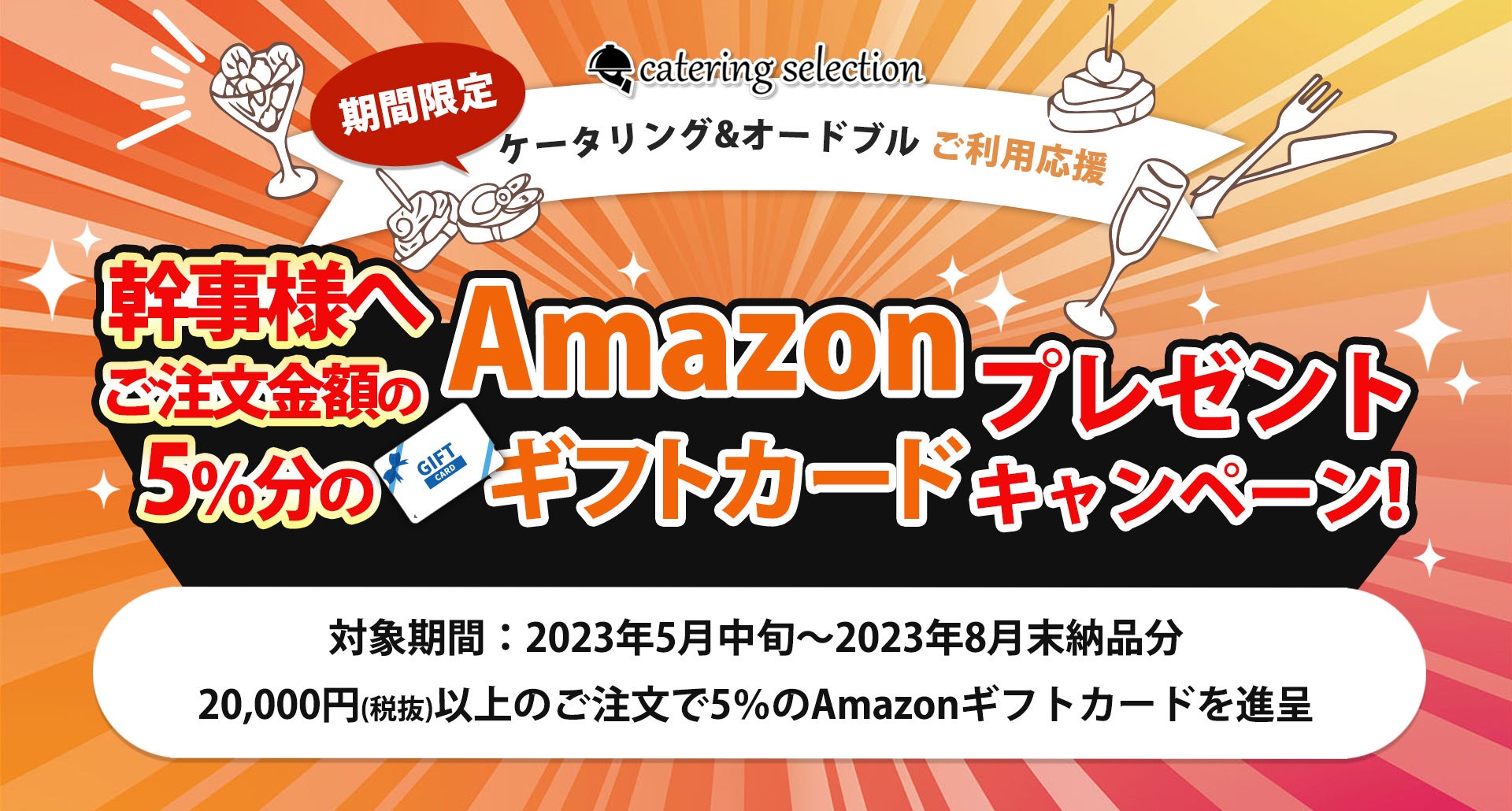 ■概要:ご注文金額の5%のAmazonギフトカードを幹事様へプレゼント!