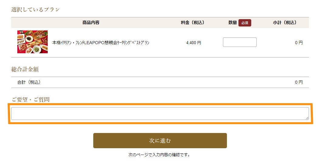 スタッフサポート付の「ケータリングプラン」、