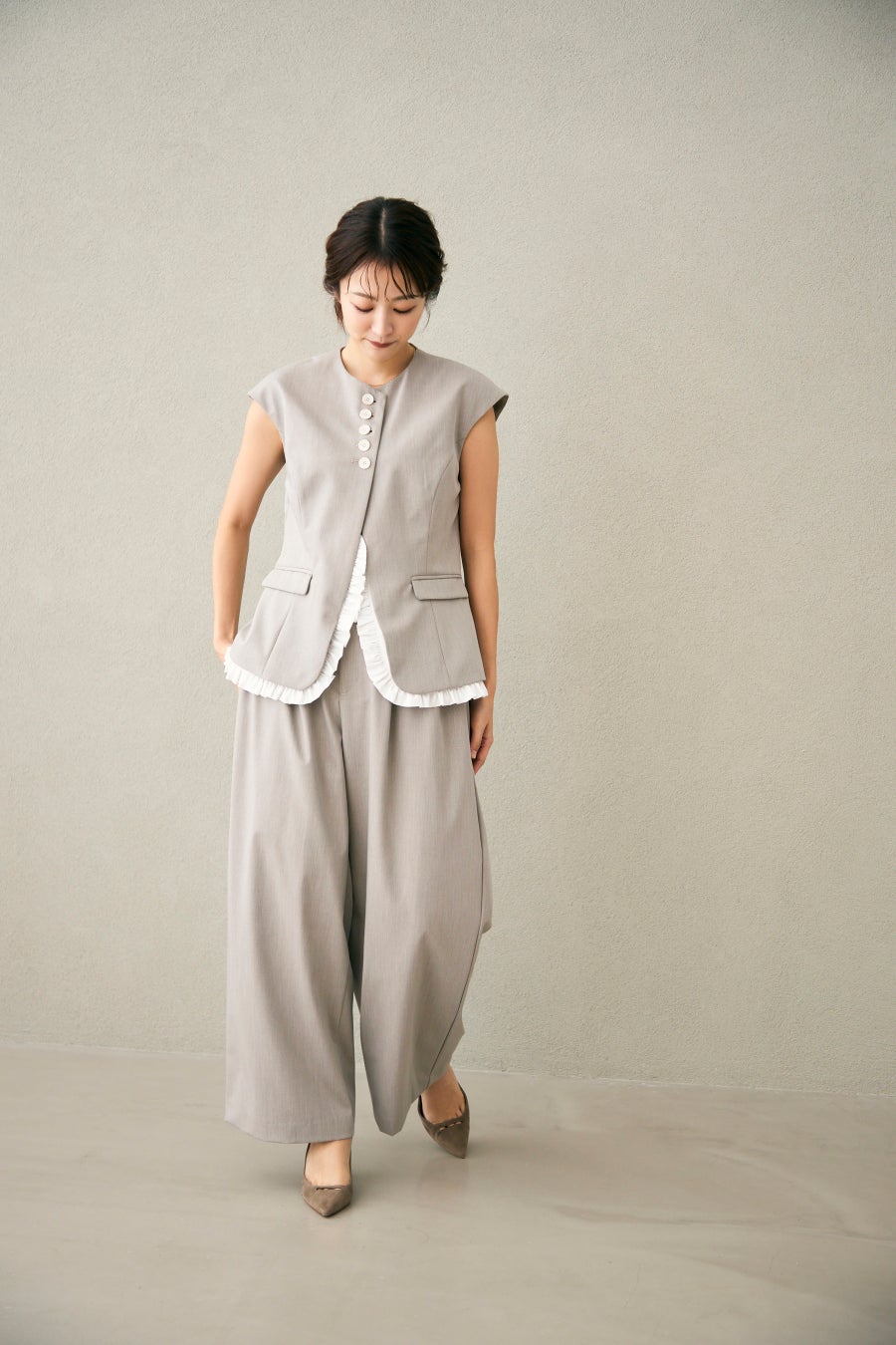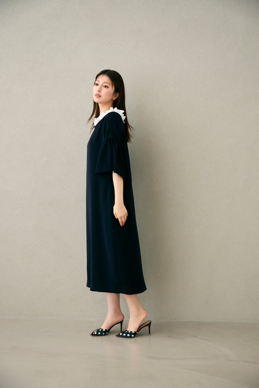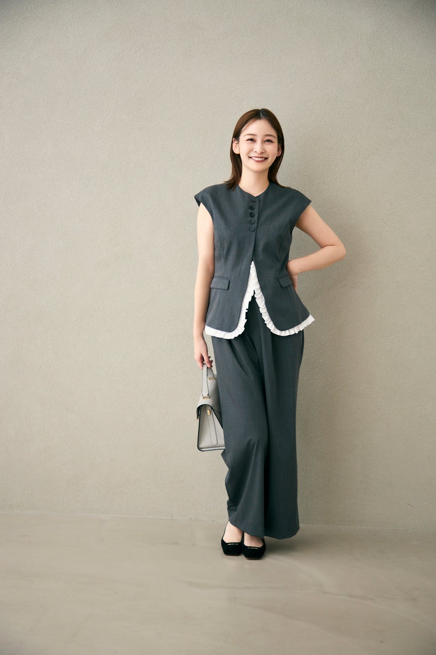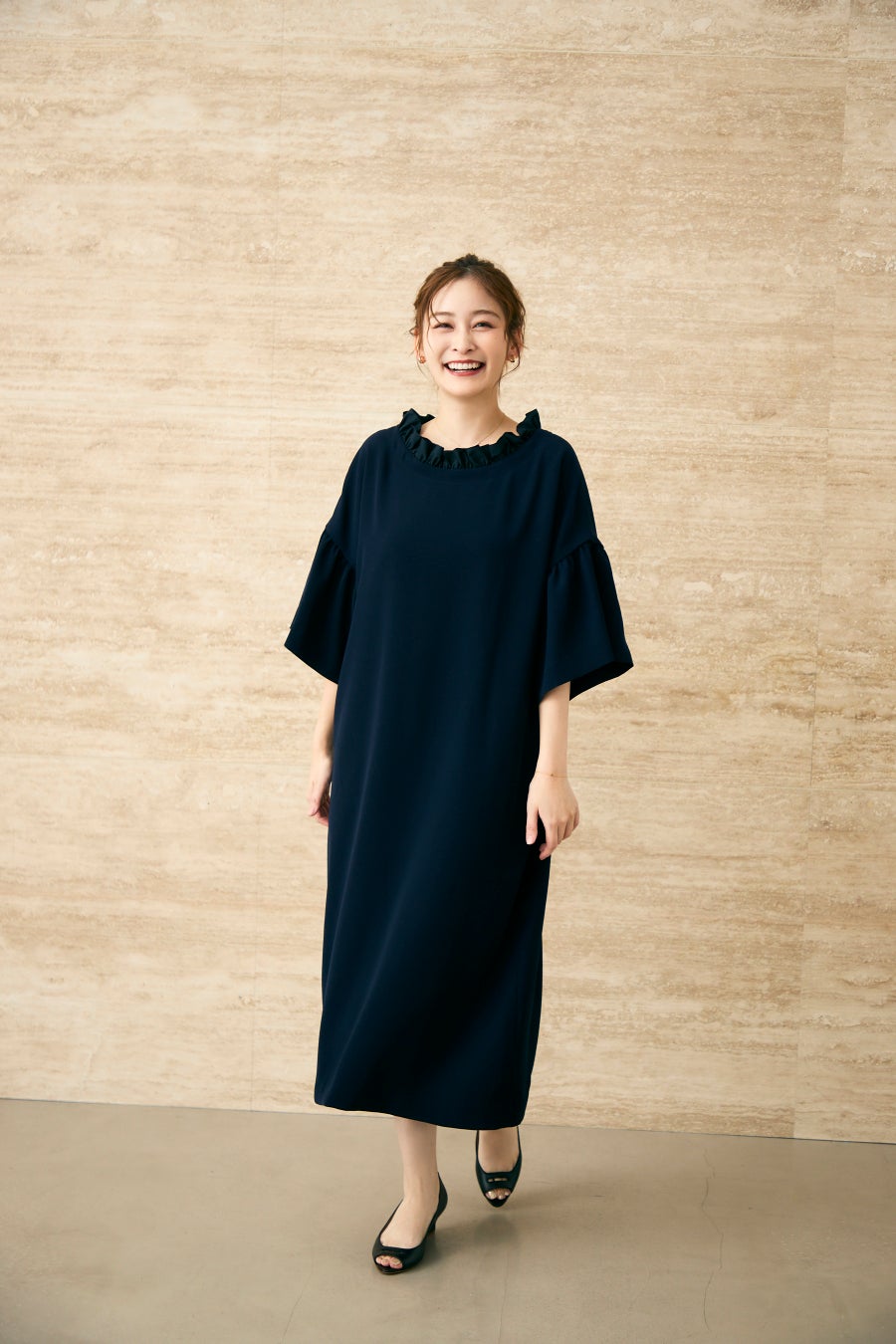 襟元にフリルがあるから、髪型が決まらなくても顔まわりを華やかに見せてくれるのもうれしい。