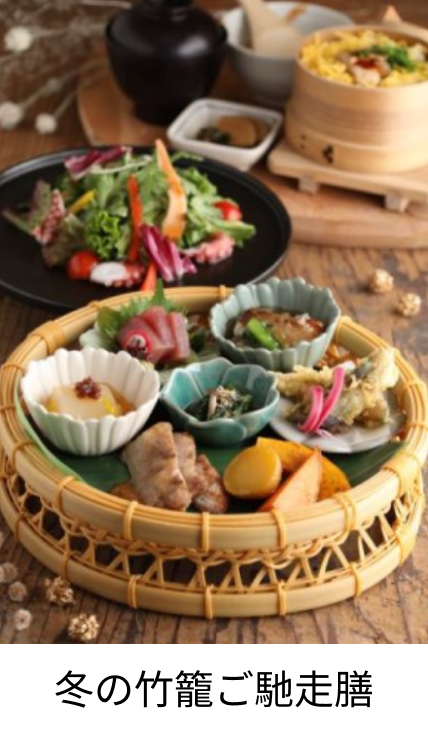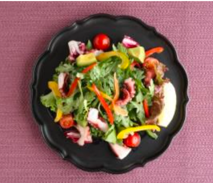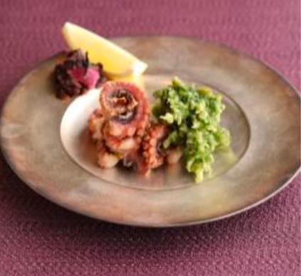冬に旬を迎える『柳蛸(やなぎだこ)』を春菊・パプリカ等の香味野菜と一緒にお楽しみいただく冬のサラダ。
