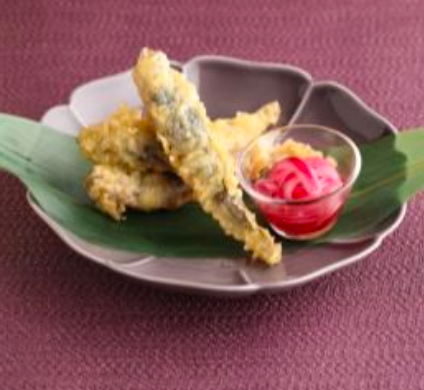 めひかりの天ぷらと赤玉ねぎのピクルス