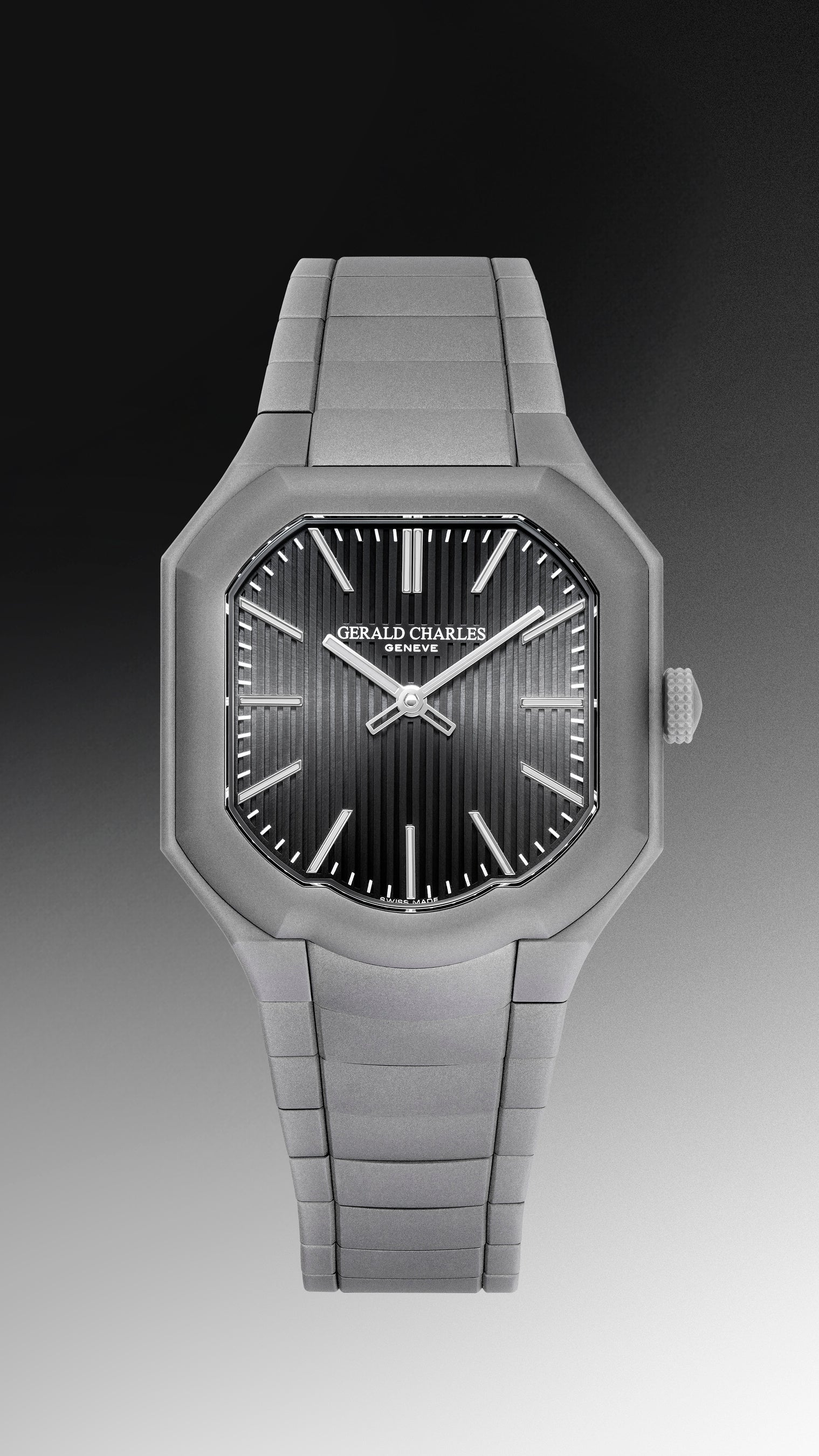 スリムで汎用性が高く、一目でジェンタの作風とわかるこの新作は、現代的な特性をさらに強化。スチール製ケースは、ジェンタ氏が先駆けて「貴金属に匹敵する素材」と位置付けたスチールの価値を継承しつつ、より深みのある色調と建築的な存在感で表現されています。