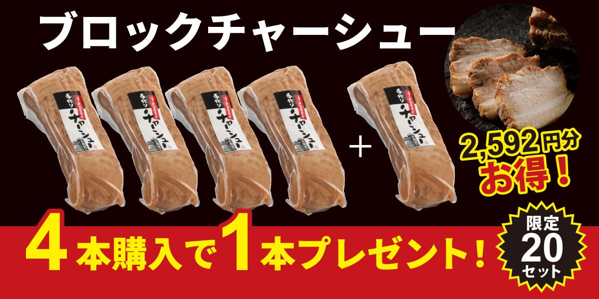 ブロックチャーシューを4本購入いただくと、1本プレゼント!(限定20セット)