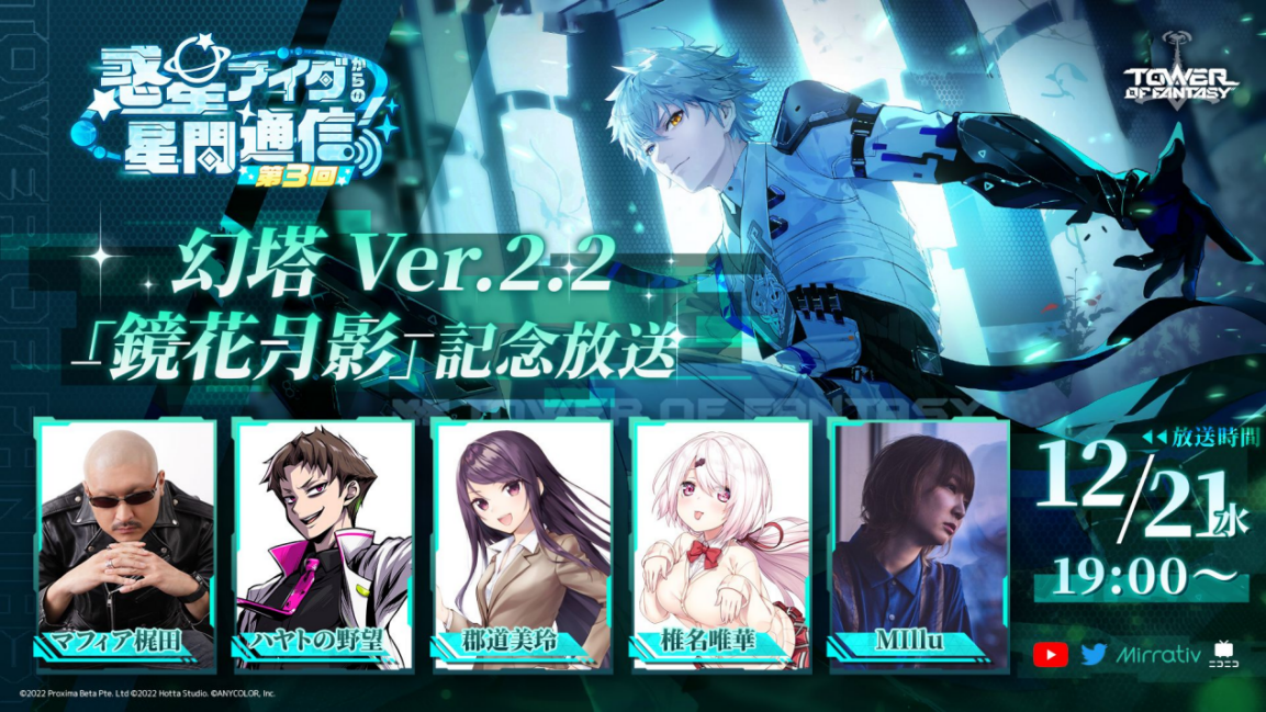 Level Infiniteは、PC・モバイル向けオープンワールドRPG『Tower of Fantasy(幻塔)』において、明日12月22日(木)に実装するVer.2.2「鏡花月影」のアップデートを記念した公式生放送を、本日12月21日(水)夜19時より配信することをお知らせします。