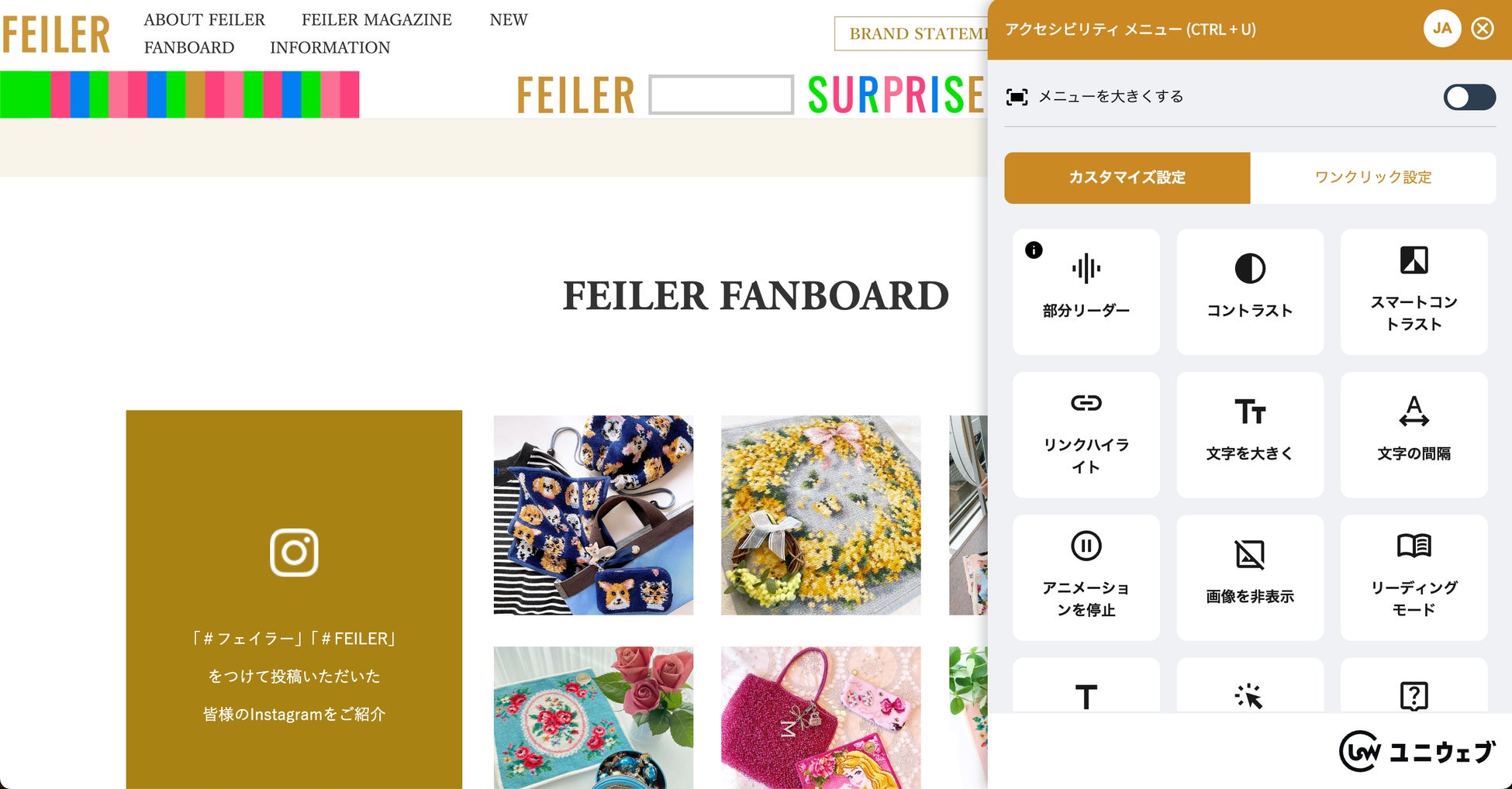 アイコンをクリックすると、アクセシビリティメニューが表示されます。