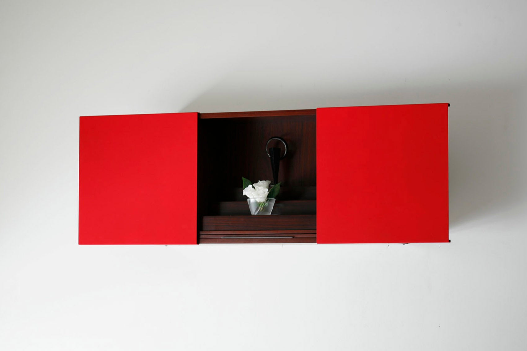 左右に開くスライド式扉の、壁掛けタイプ厨子。会津産の桐の柔らかな風合いが感じられる。