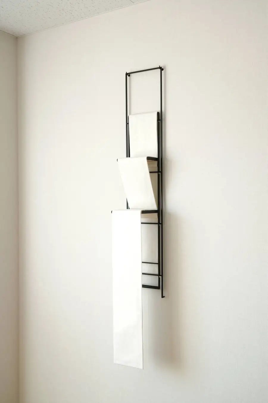 伸縮可能なスチール製のフレームに布を掛けて完成する、清らかな印象の厨子。