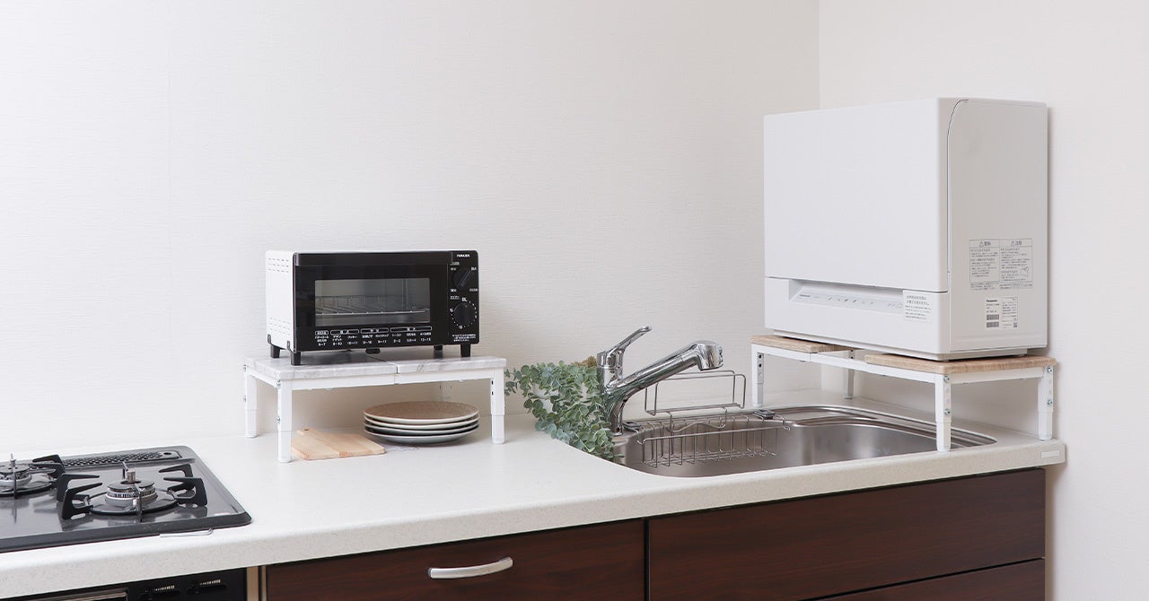 どんどん増える便利な調理家電。この食洗機ラックは薄型なのでトースターやオーブン、様々な家電の収納ラックとして使うことが出来ます。