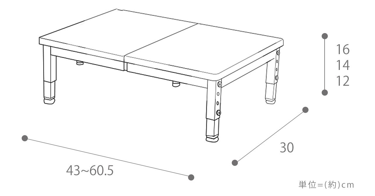 - サイズ :(約)幅43~60.5×奥行30×高さ12/14/16cm