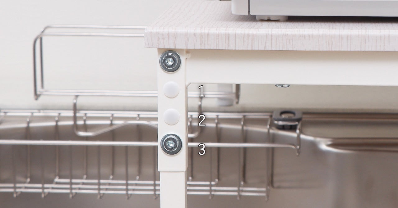 天板は、約12cm 、14cm 、16cmの3段階に調整が出来ます。ラック下が収納スペースや作業スペースにも!