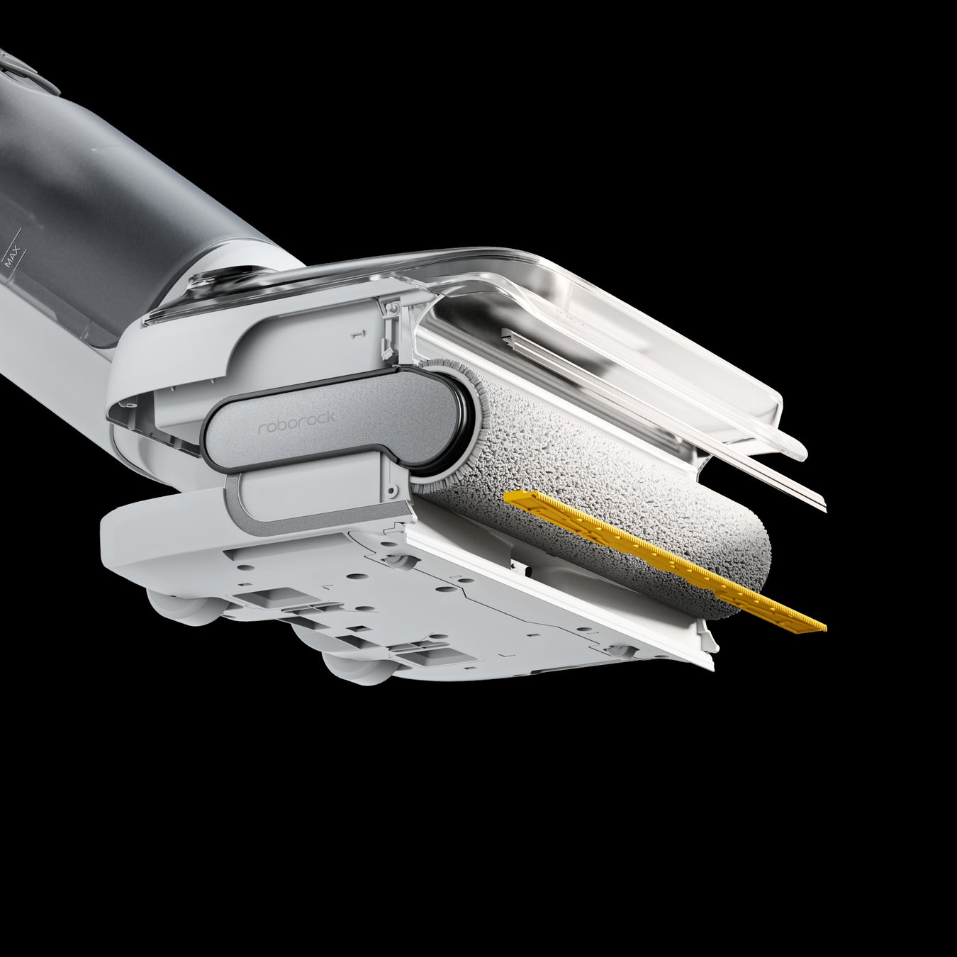 「F25 RT」は、刃のようなギザギザした形状のスクレーパーと、ブラシへ一定の圧力をかけるスクレーパーを組み合わせたJawScrapers™技術を採用したローラーブラシを搭載しています。刃状のスクレーパーは、長い髪の毛やペットの毛などを絡まることなく吸い上げ、毛の絡まり率0%※1を実現します。もう片方のスクレーパーは、ローラーブラシを加圧して吸収した汚水を絞り取り、水拭き跡を残さないキレイな仕上がりを実現します。