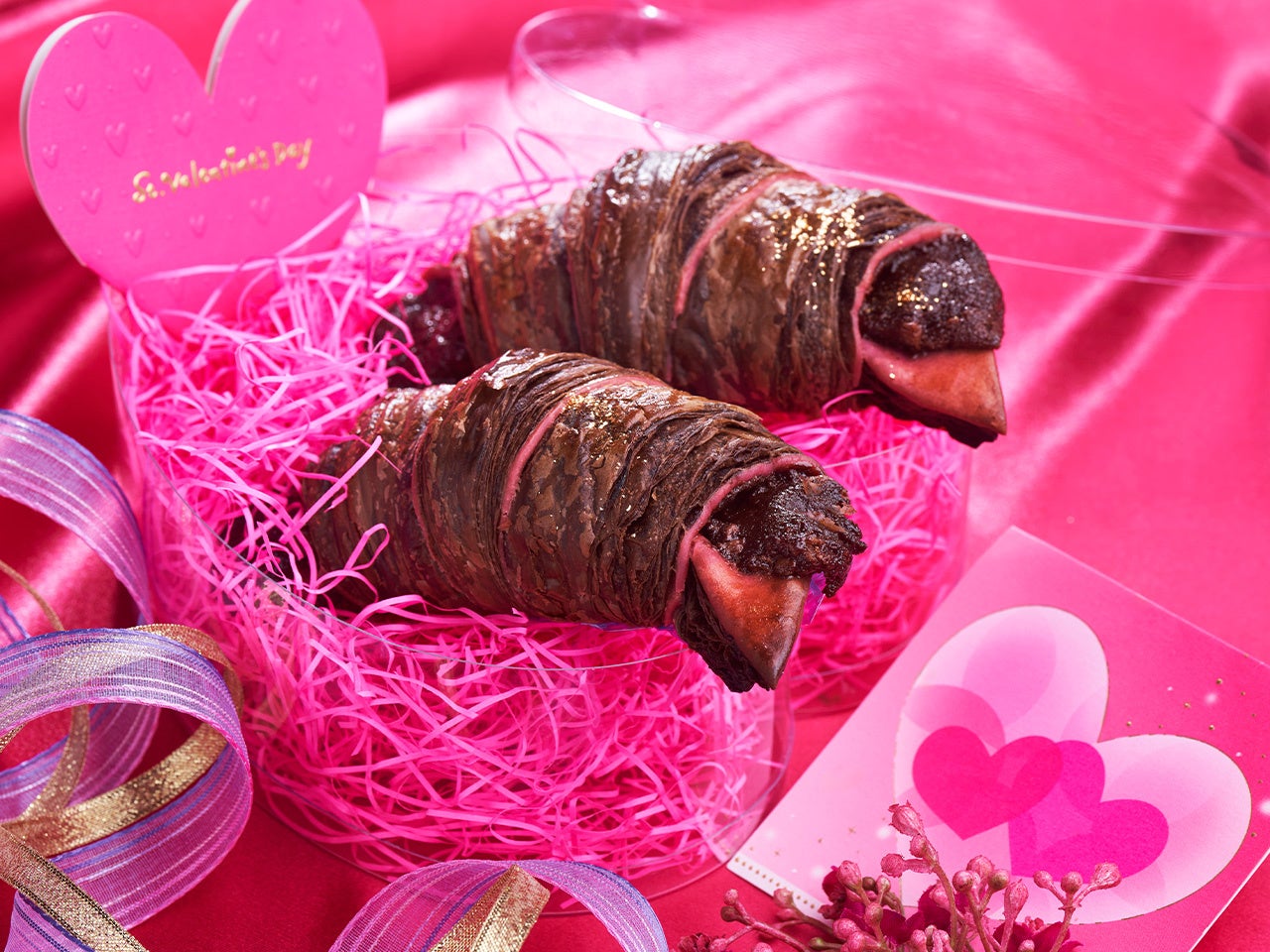 【外と中の両方からチョコレートを感じるバレンタインカラーのプレミアムチョコクロ】
