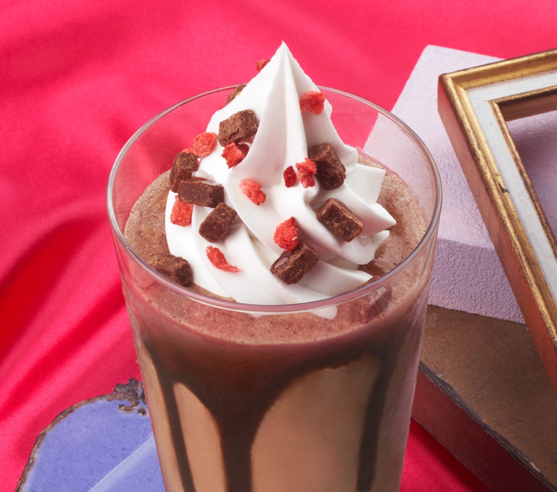 ホッと癒される、期間限定のホットドリンクです。濃厚でまろやかなホットチョコレートに、ベルギー産チョコレートを使用した程よい甘さのホイップをカップ一面に絞りました。仕上げにはドライいちごとソフトな食感で口どけの良い生チョコレートをトッピングし、少しずつかき混ぜることでドライいちごや生チョコレートの食感の変化もお楽しみいただけます。
