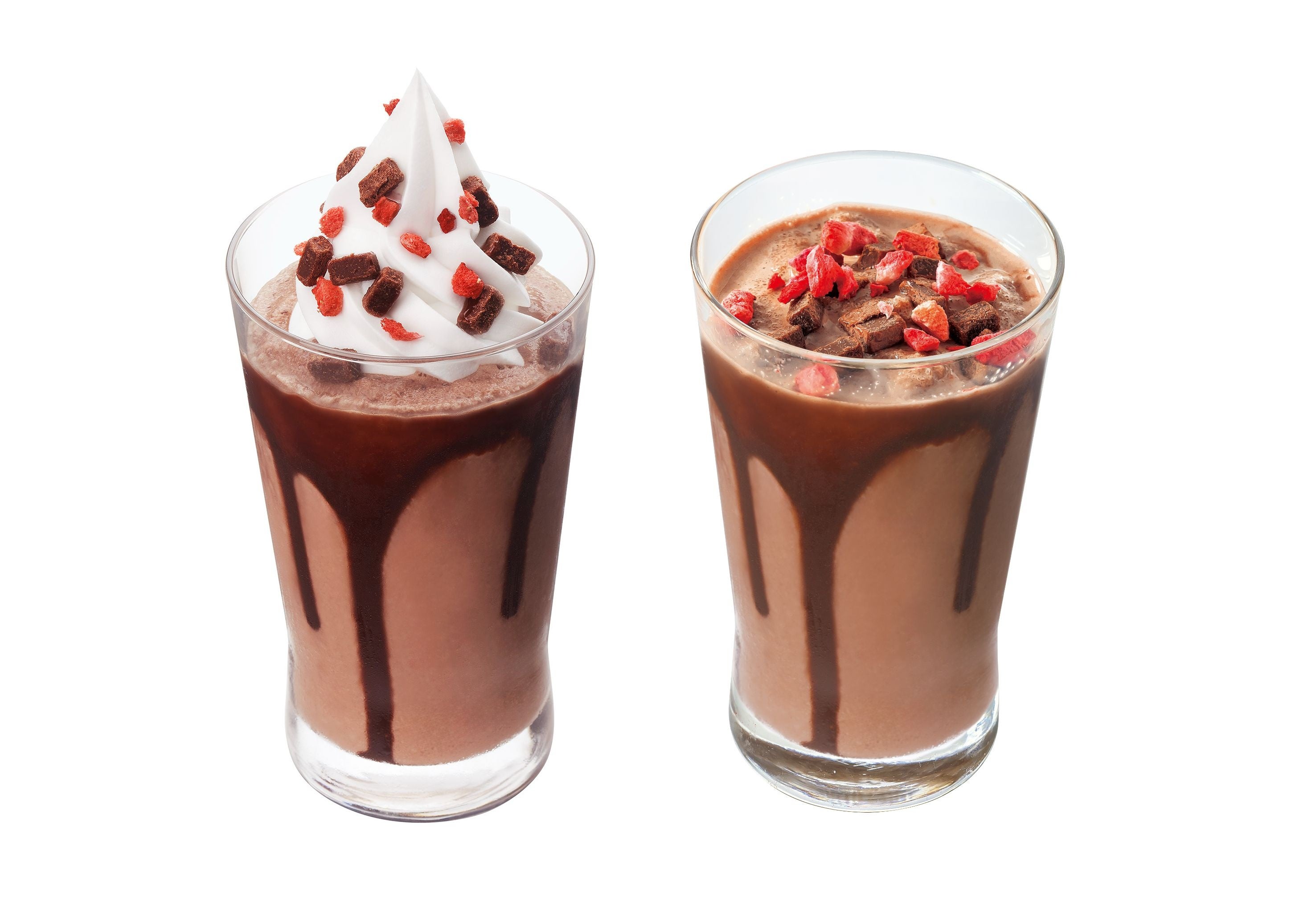 『メルティ生ショコラスムージーwithとろ~り生ショコラソース』は、生チョコレート入りの濃厚なスムージーとソフトクリームのミルクの優しい甘さが絶妙に混ざり合い、クリーミーでリッチな気分を味わうことができるドリンク。