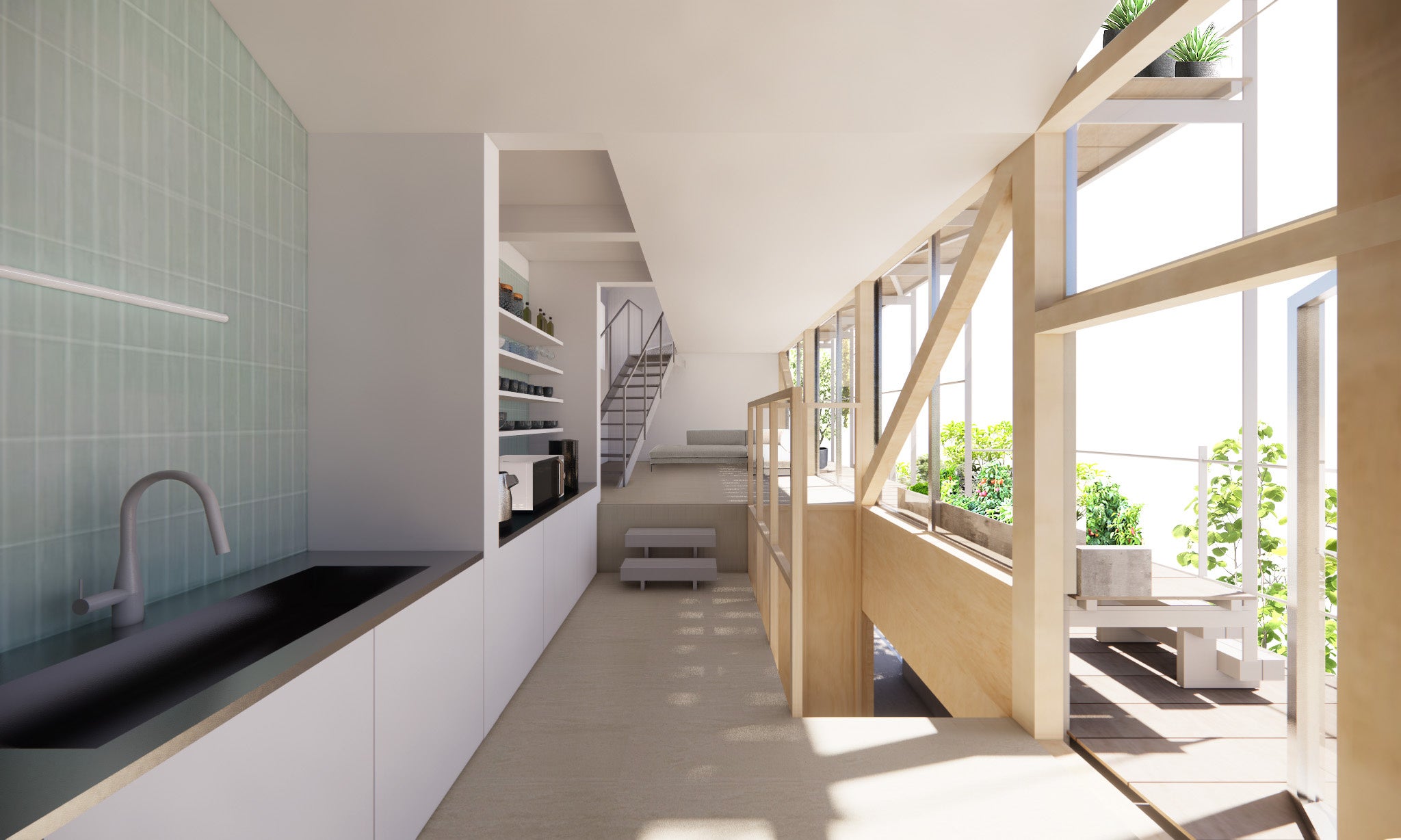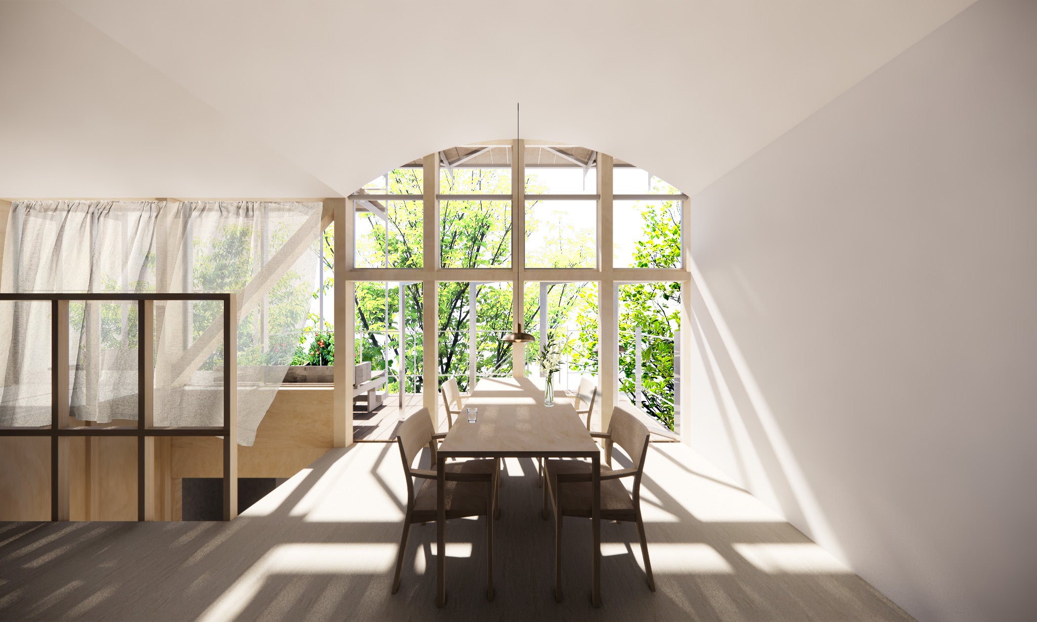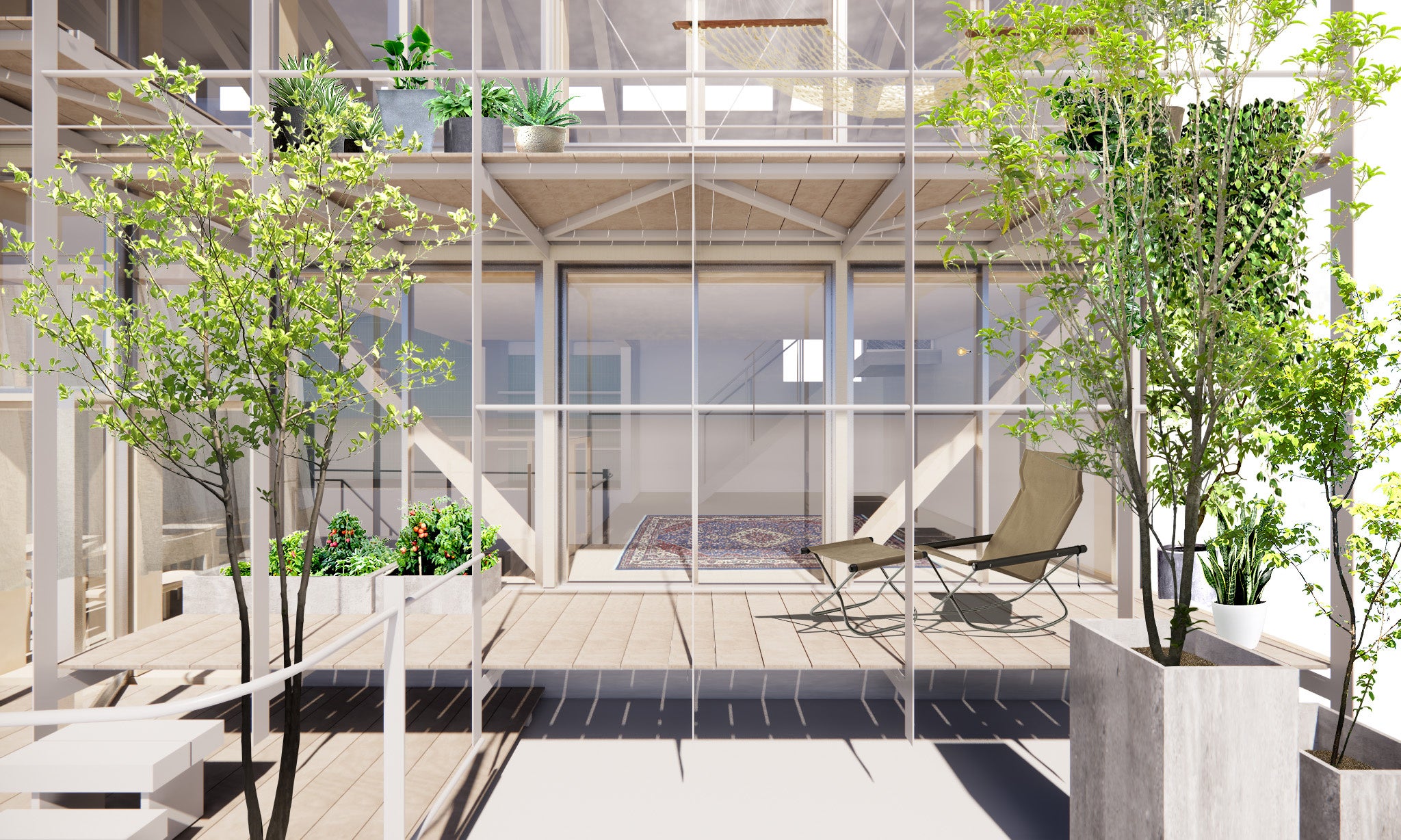 「BALCONIES」は、街に溶け込む家を目指し、外部空間と室内空間をなるべく同じ形状にすることで、外部環境や街との接点を最大化することを意図しております。そして、庭やバルコニーが家と街との緩衝としての役目となり、街に溶け込む家を創造します。