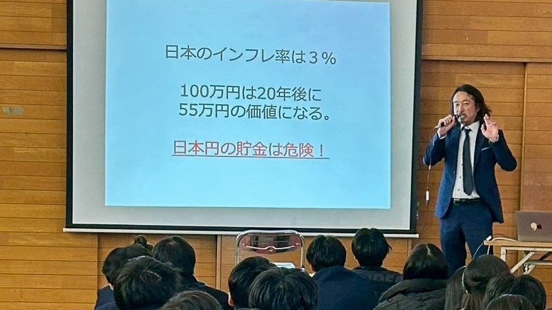 中学3年生約160名を対象に、令和時代に必要な金融リテラシーを解説