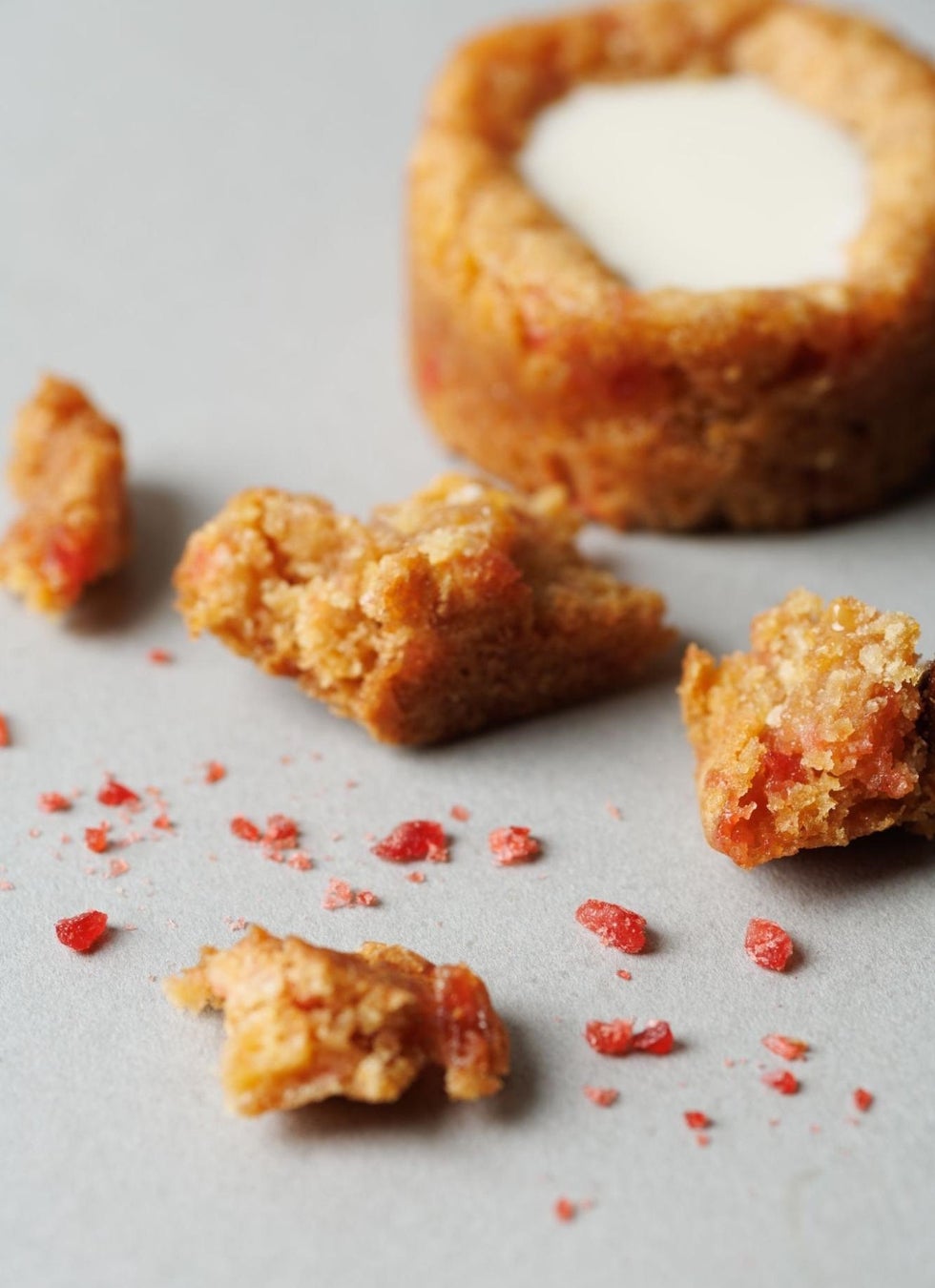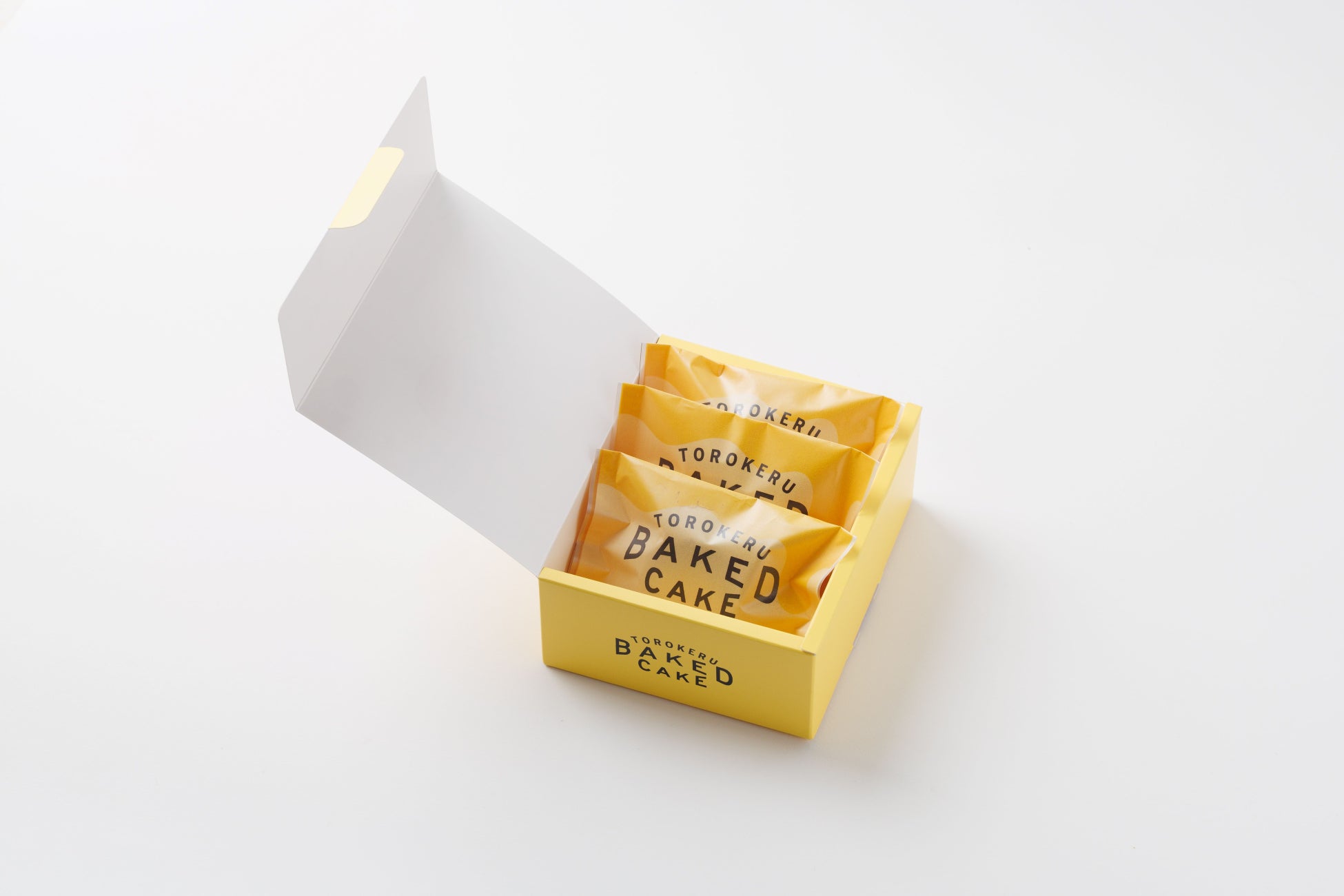 ケーキの生地に使われているのは、1枚1枚手作業で焼いているバターのいとこの ゴーフレット生地。生地を切り抜く際に生まれる美味しいはじっこ。素材の恵みを余すことなく大切に、 新しいお菓子として届けたいという想いから、とろけるベイクドケーキは生まれました。