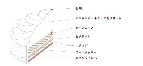 創業以来守り続けているこだわりのスポンジ生地は卵の比率が高く、しっとりふわふわの食感が特徴です。このスポンジだからこそ、チーズムース、マスカルポーネチーズ生クリームとの相性の良さが際立ち、軽やかで上質でな味わいを作り上げています。