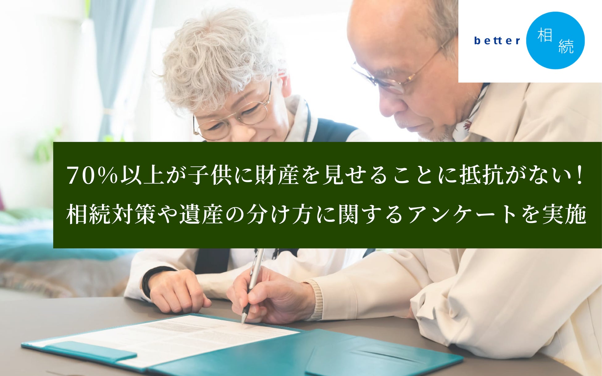 70%以上が子供に財産を見せることに抵抗がない!相続対策や遺産の分け方に関するアンケートを実施【better相続】