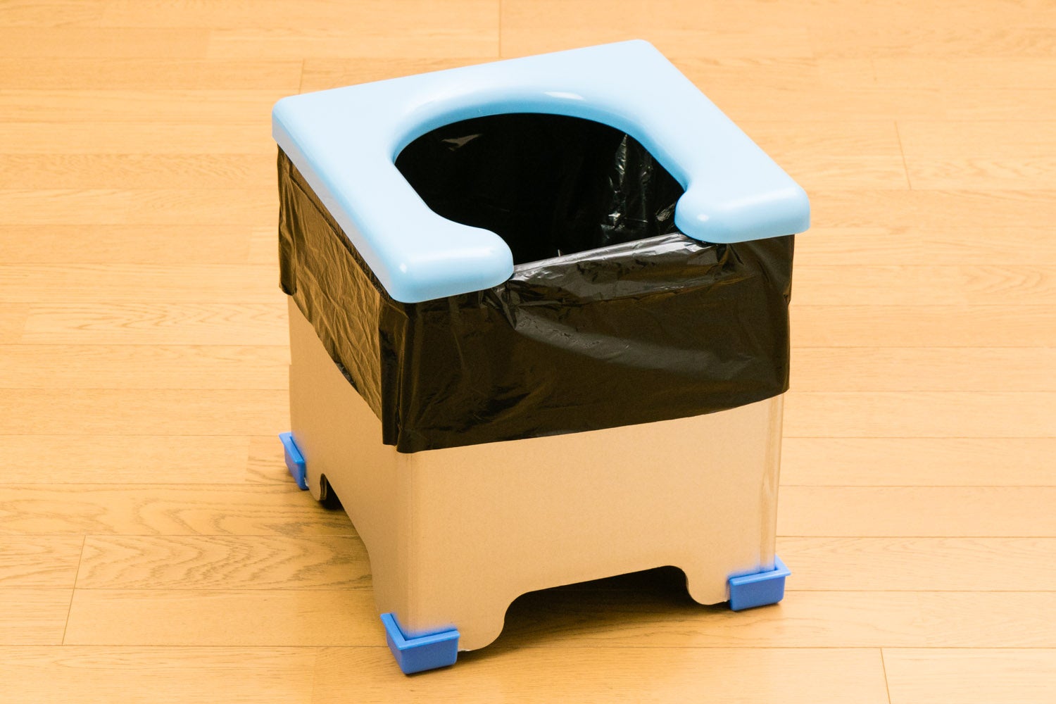 品質:便座:ポリプロピレン、本体:紙、脚キャップ:ポリエチレン、凝固剤:高分子ポリマー、汚物袋:ポリエチレン、簡易ポンチョ:ポリエチレン
