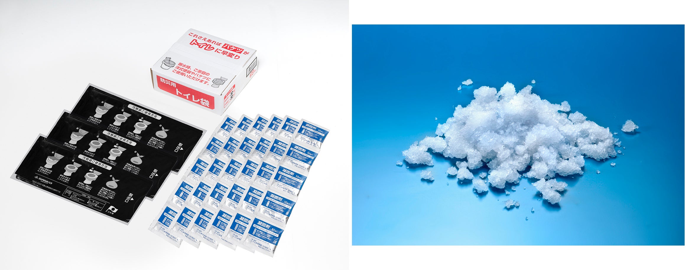 サンコーは簡易トイレを展示、凝固剤と汚物袋がセットになった『防災用トイレ袋』を販売いたします。また、参加される親子に向け、簡易トイレの使い方レクチャーや、凝固剤の体験会も実施いたします。