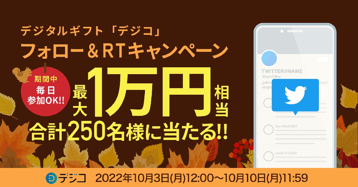 【毎日参加OK!10/10まで】最大1万円が総勢250名様に当たる!秋のデジコTwitterキャンペーンを開始