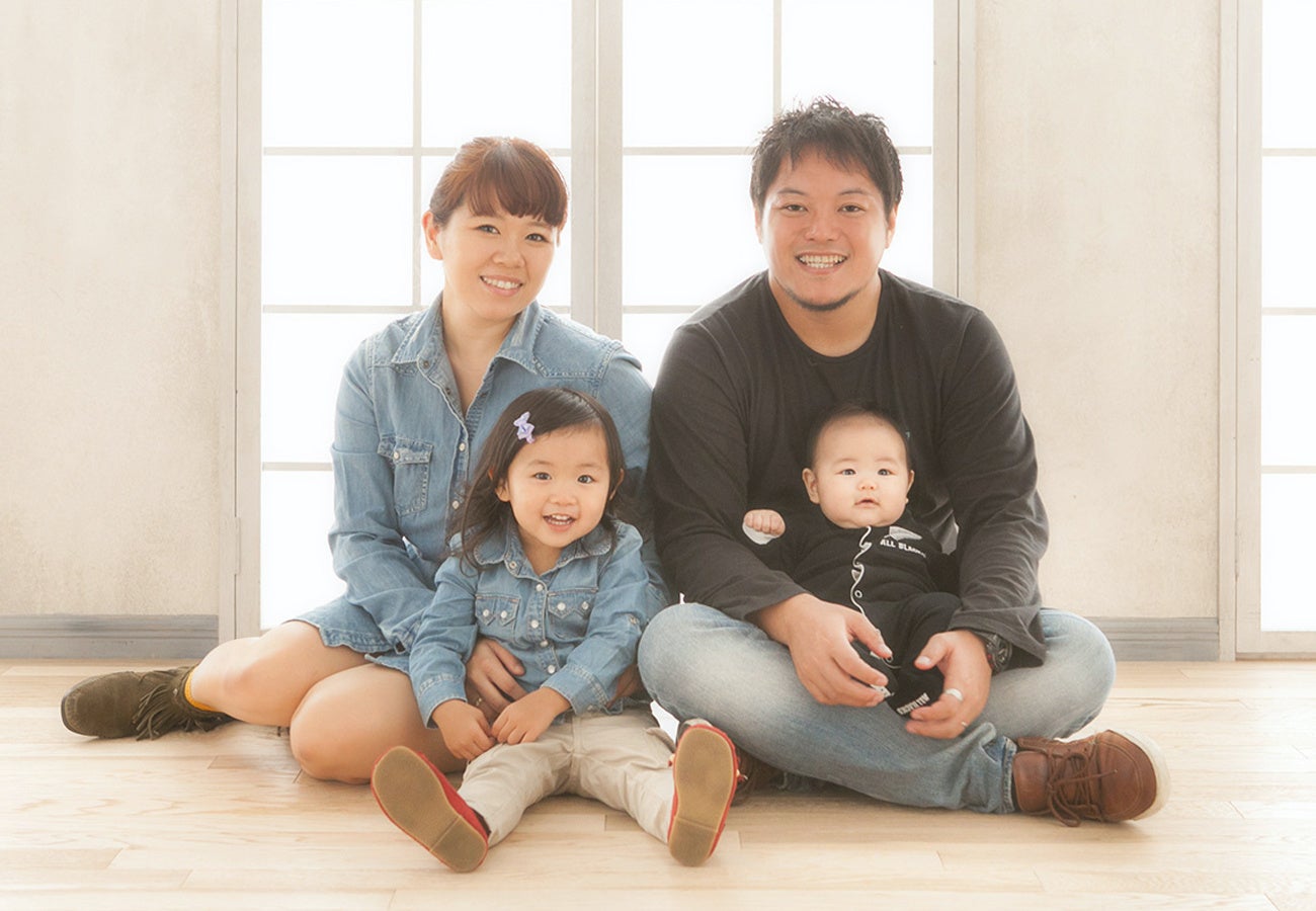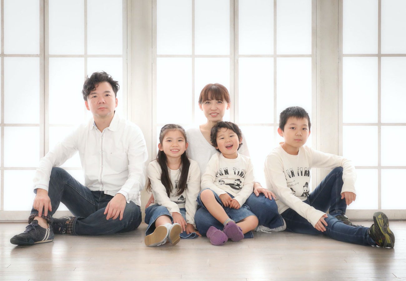ファミリーフォトは、1家族さま貸し切りでの撮影。広々とした個室スタジオで、家族みんなでリラックスして記念撮影をお楽しみいただけます。インドアロケーションなので天候に左右されることもありません。