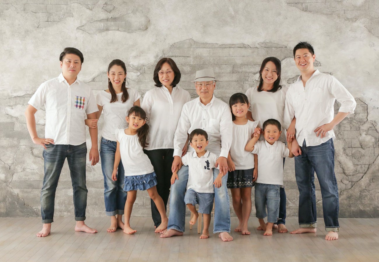 家族みんなで衣装を揃え、ナチュラルな雰囲気やシックな雰囲気など、お好みのテイストを選んで撮影できるファミリーフォト。スタジオで撮るこだわりの家族写真は、いつもとはひと味違う雰囲気に仕上がるので、毎年撮影されるお客様も多くいらっしゃいます。