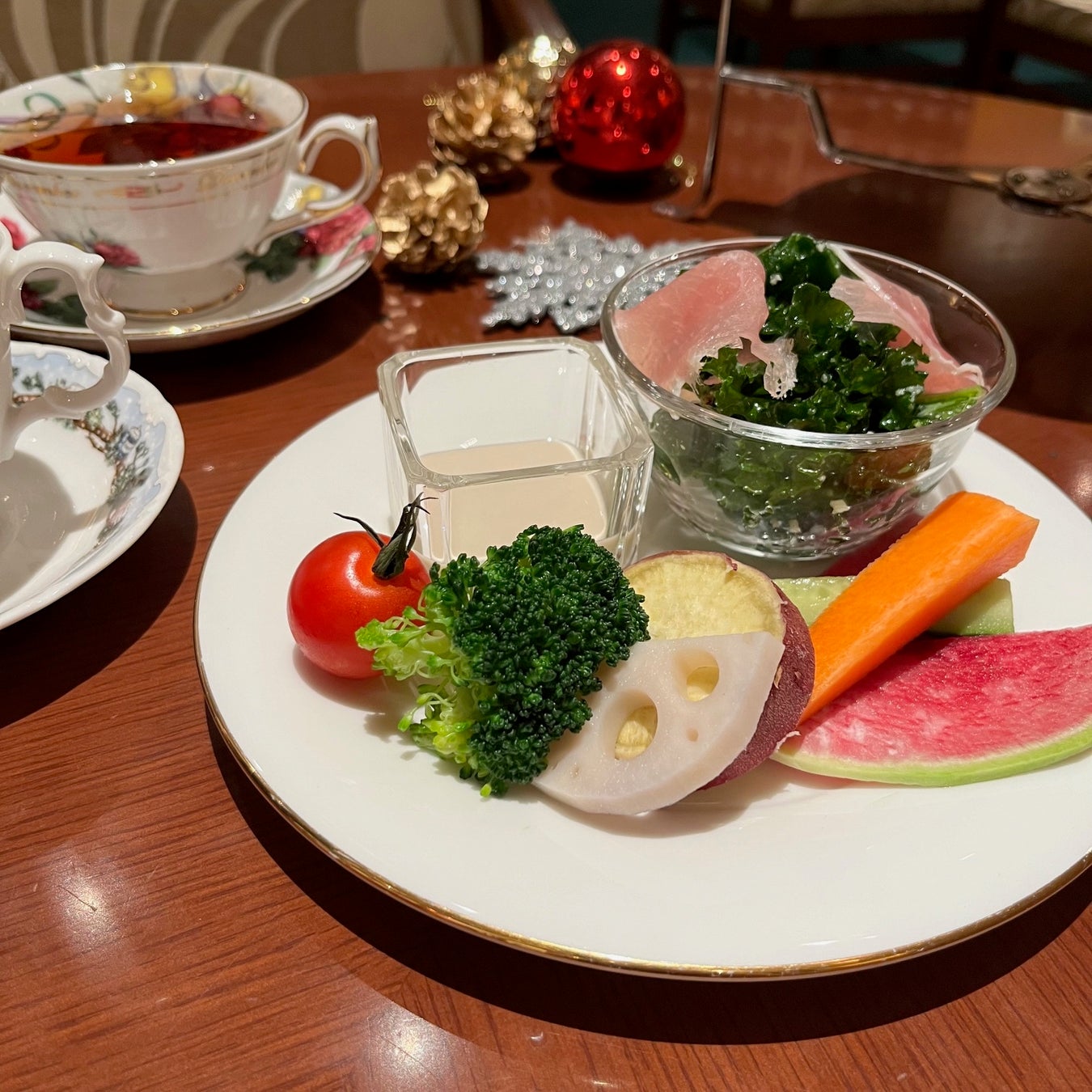 《 生ハムとケールのサラダ・7種の野菜の彩りバーニャカウダ》