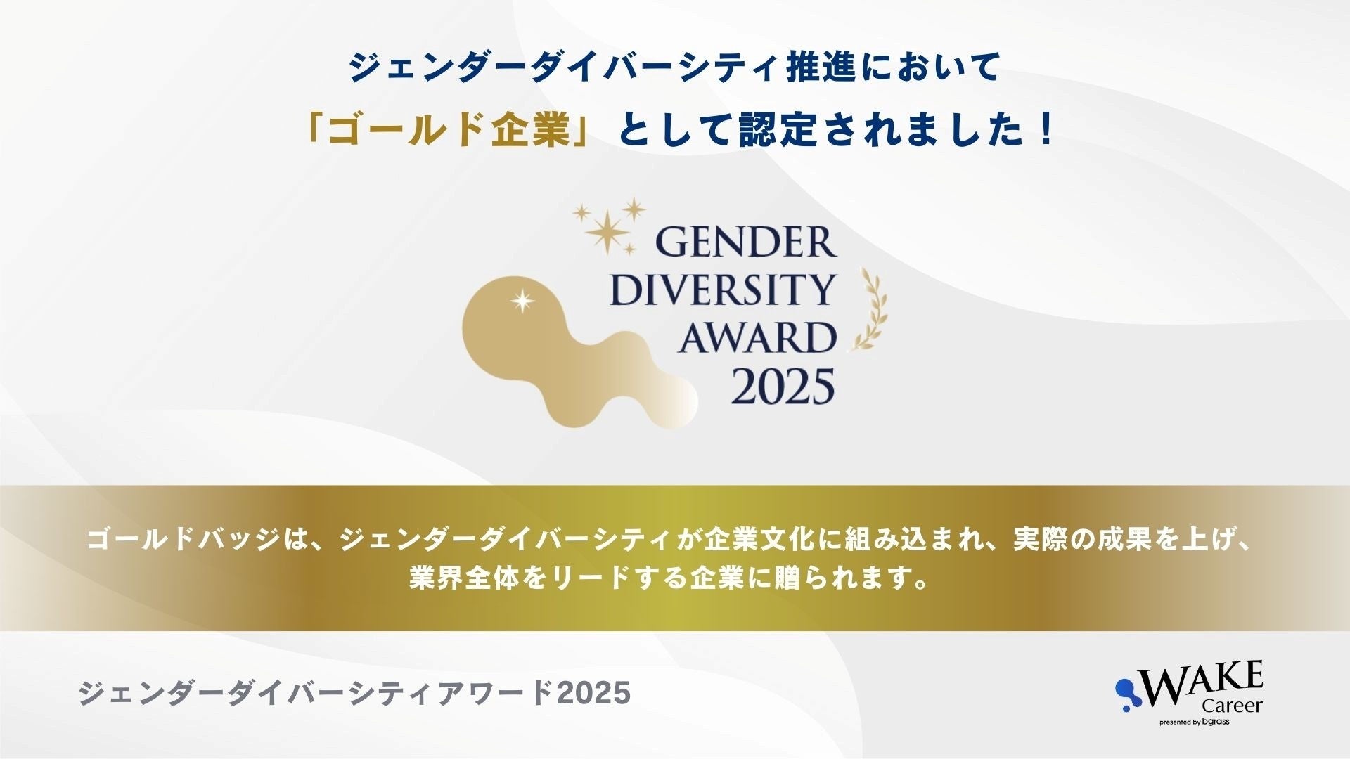 このたび、「ジェンダーダイバーシティAWARD2025」において、ゴールド認定企業として選出いただいたことを大変光栄に思っております。
