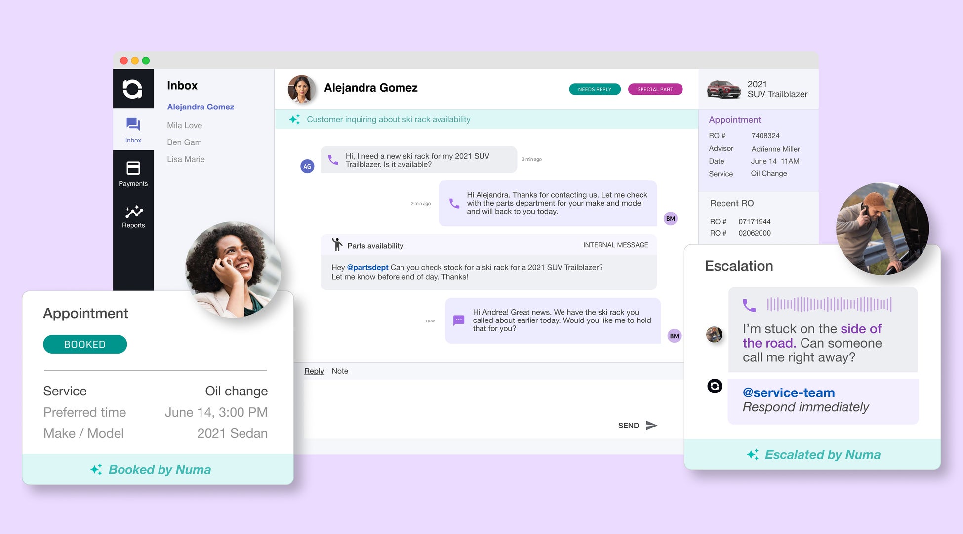 Numaは、乗用車ディーラーの多岐にわたる現場業務や顧客とのコミュニケーションを自動化・効率化することで、従来のディーラー事業を変革するAIツールを開発しています。電話・チャットによる問い合わせへの応対から、サービス予約の取付けや顧客管理、タスク管理、ワークフロー設計にいたるまで、小規模な生成AIモデルを複数組み合わせることで、ディーラー業務の効率化と対顧客サービス品質の向上を実現しています。例えば、本ツールの導入により、顧客からの問い合わせに対する応対時間が9割以上短縮されています。従来は、応対スピードや従業員ごとの応対品質の差が顧客満足度に大きな影響を与えていましたが、Numaは生成AI技術を活用することで、ディーラーの顧客リテンション率を改善するほか、アフターサービスの顧客満足度の向上を通じた自動車メーカーのブランド価値向上にも貢献しています。現在、米国およびカナダにおいてNumaのサービスを利用する500以上のディーラーから高い支持を得ており、2020年から2023年にかけて、売上が22倍超に増えるなど、急速な成長を続けています。