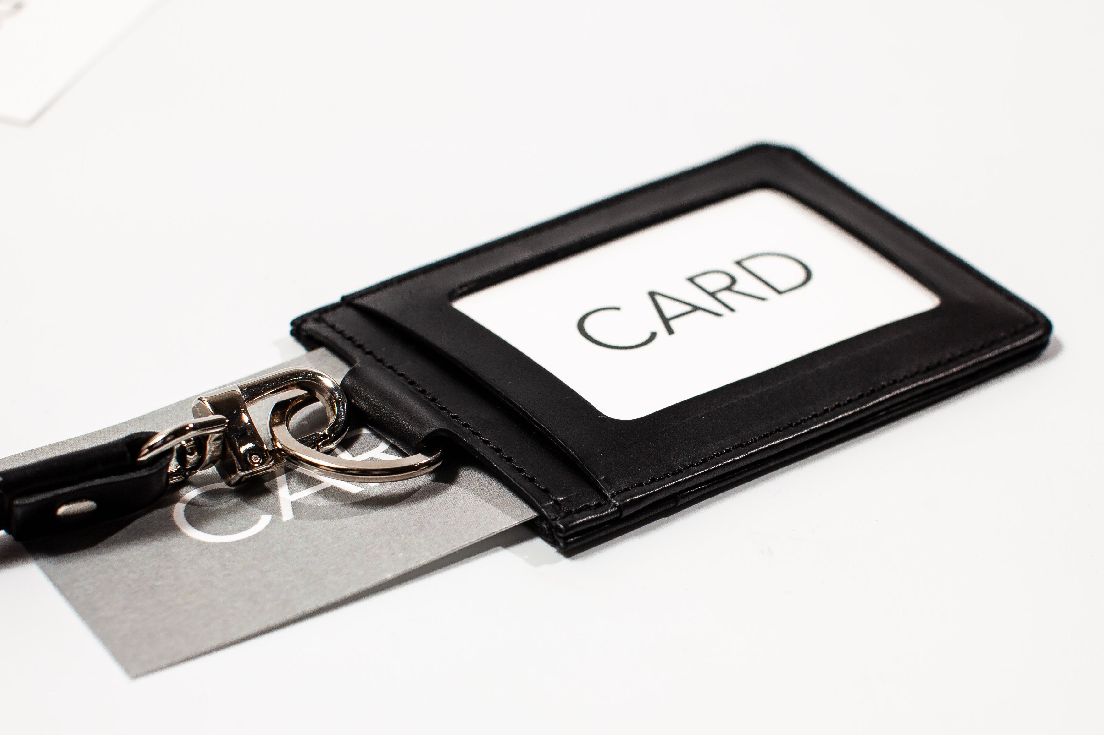 オフィスでの名脇役になる縦型IDケース。3つのスリットを設けており、社員証、名刺、ICカードが個別に収納できる。表裏ともに、余計なものを一切排除。前面のIDポケットにはクリアすらなく、ノイズが少ないため、上質なブッテーロレザーを存分に楽しむことができる。