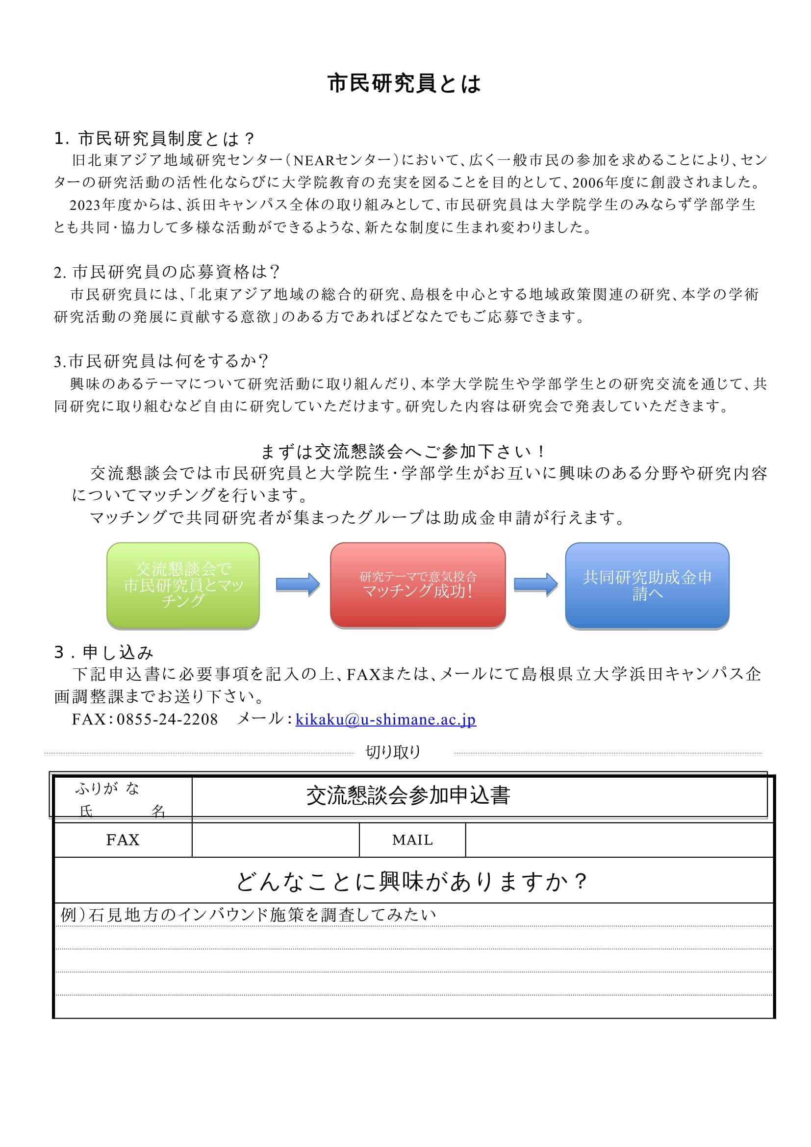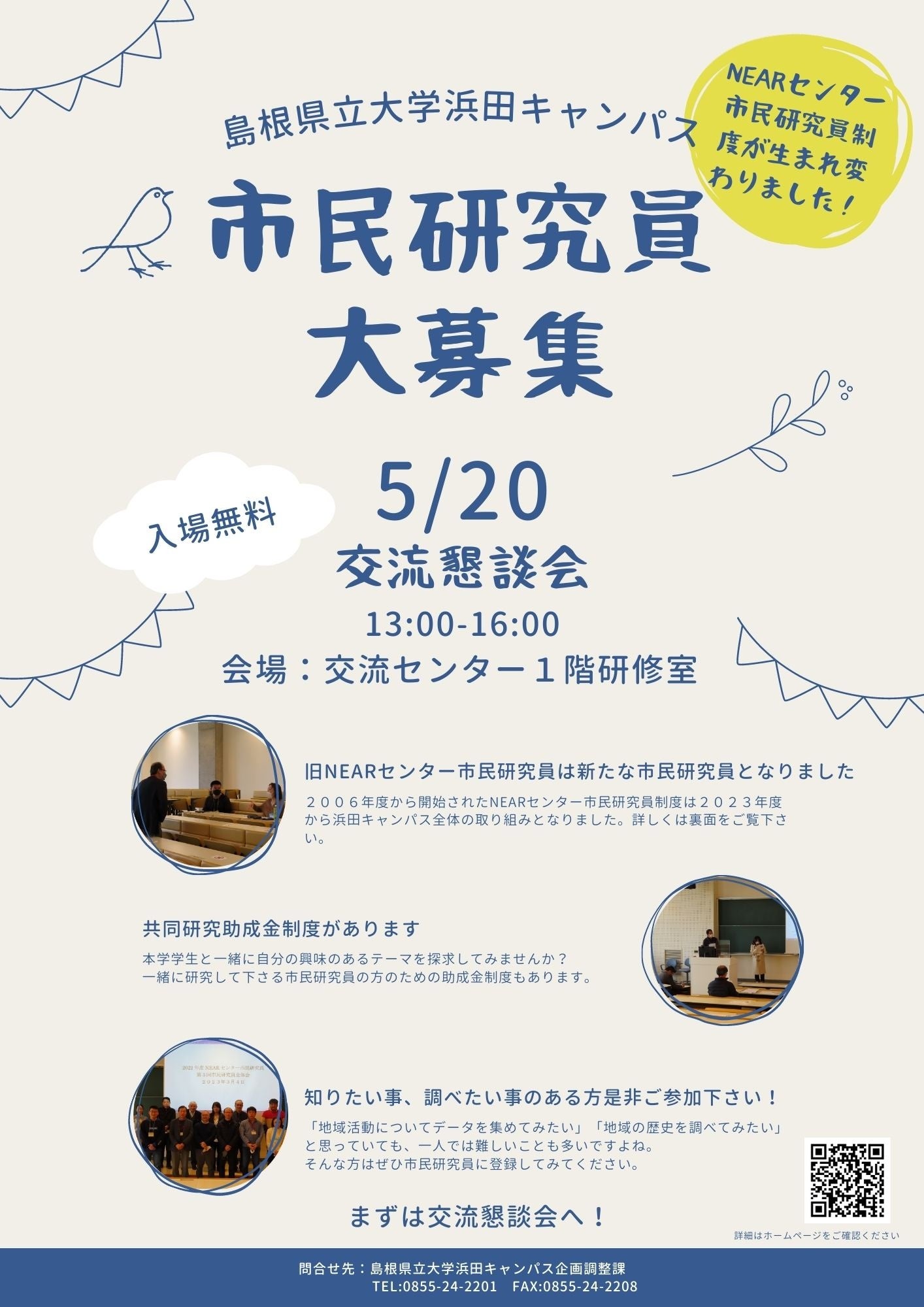 島根県立大学浜田キャンパス市民研究員制度がスタートします