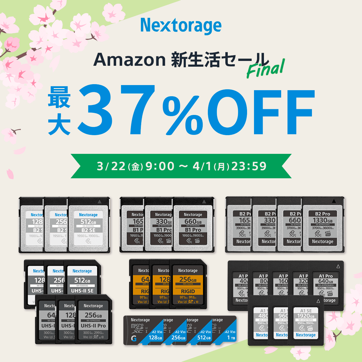 Nextorage株式会社(ネクストレージ株式会社、代表取締役:本多 克行、神奈川県川崎市)は、3月22日~3月29日までのAmazon新生活SALE FINAL(先行セール)、3月29日~4月1日までのAmazon新生活SALE FINALに参加することをお知らせいたします。