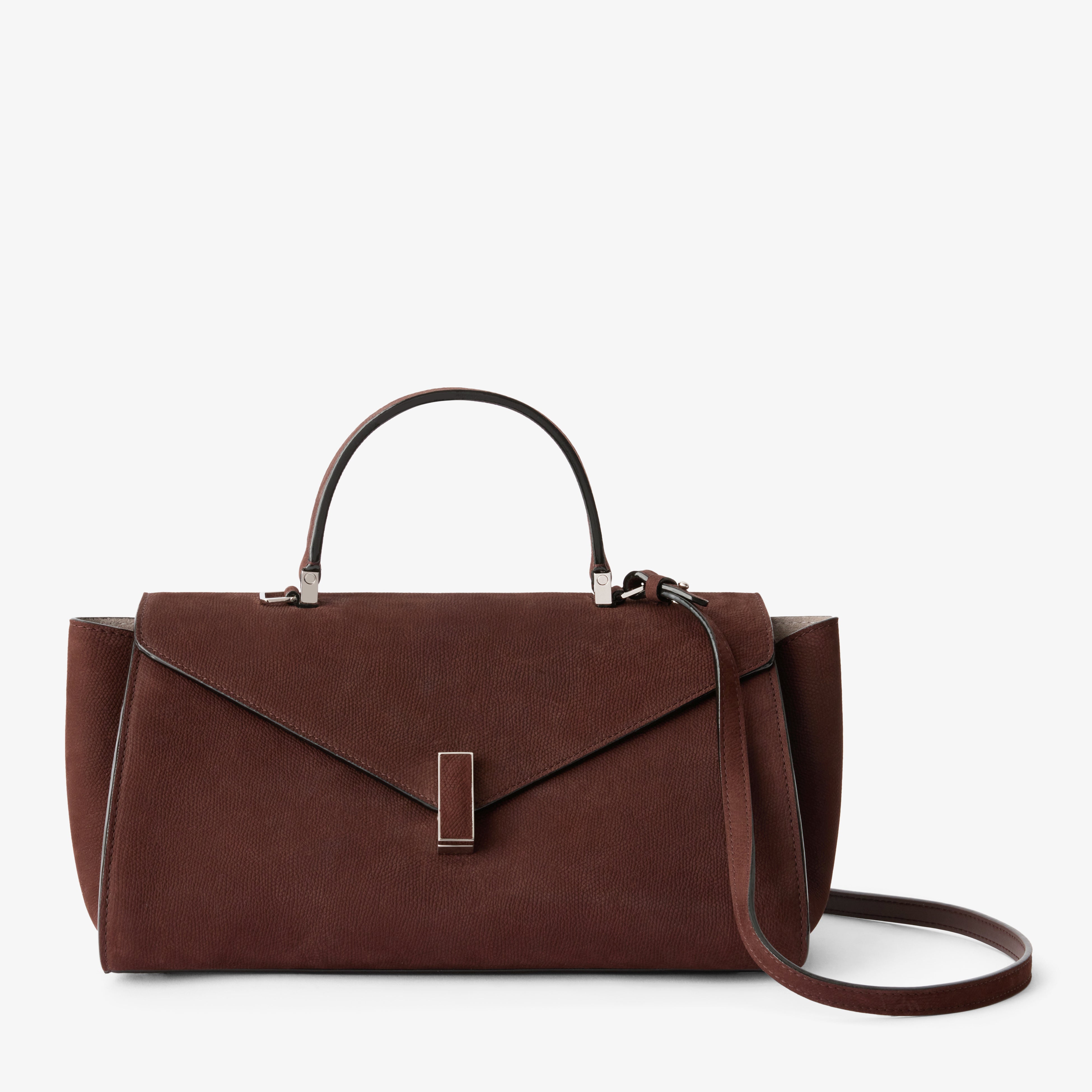 ミレプンテ ソフトレザーとセンソ ヌバックレザーを用い、現代の動きに合わせた横長のシルエットを採用。十分な収納力を備えながら軽く、使い勝手に優れています。脇に抱えても、腕に掛けても、美しくエレガントに携えられます。