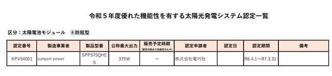 この度、フレキシブルソーラーG+の主力である375Wモデルが、防眩性にも優れているということで、クールネット東京より「令和5年度優れた機能性を有する太陽光発電システム」の認定を受けました。東京都の補助金に上乗せとして、さらに5万円/kWの補助金が得られます。(※1)